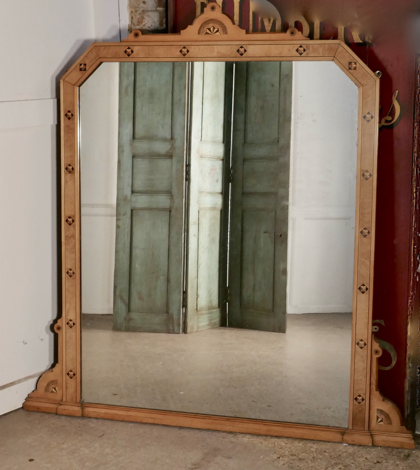 Large Victorian Arts and Crafts Over Mantle Mirror