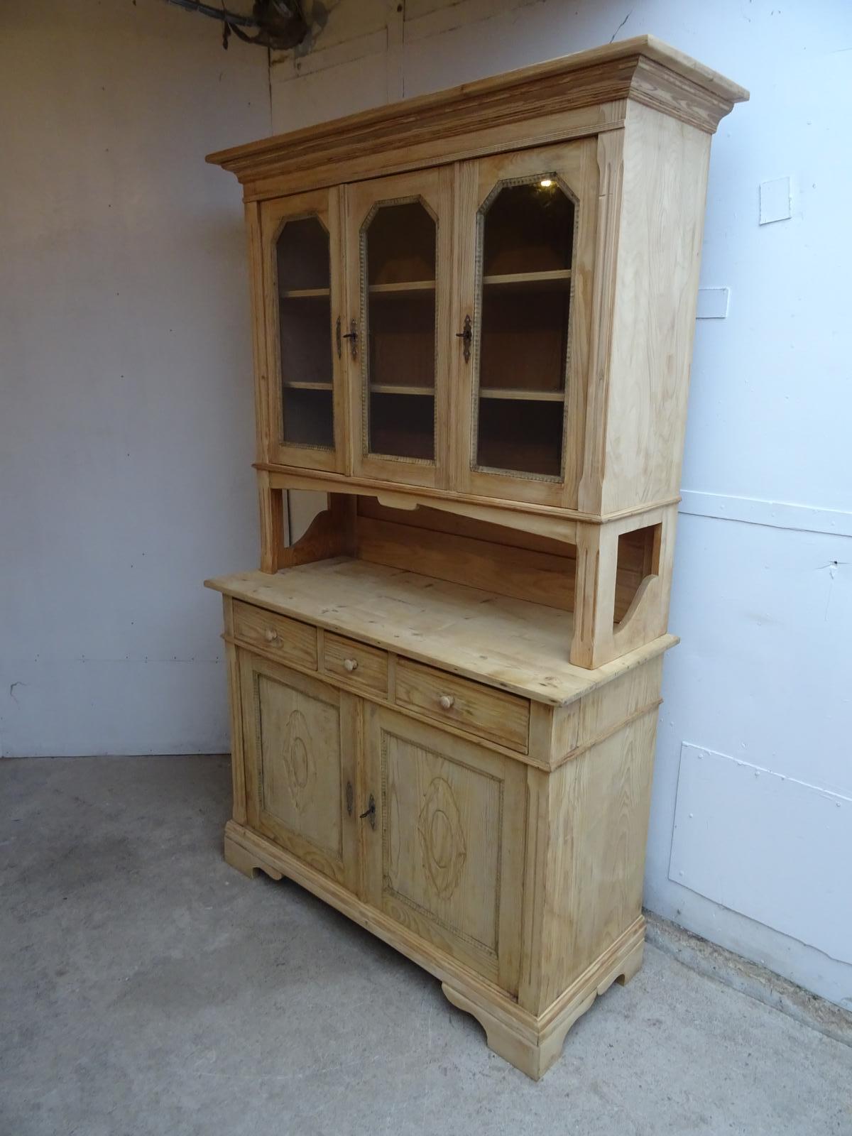 Large Victorian Beaded Antique Pine Kitchen Dresser to wax / paint