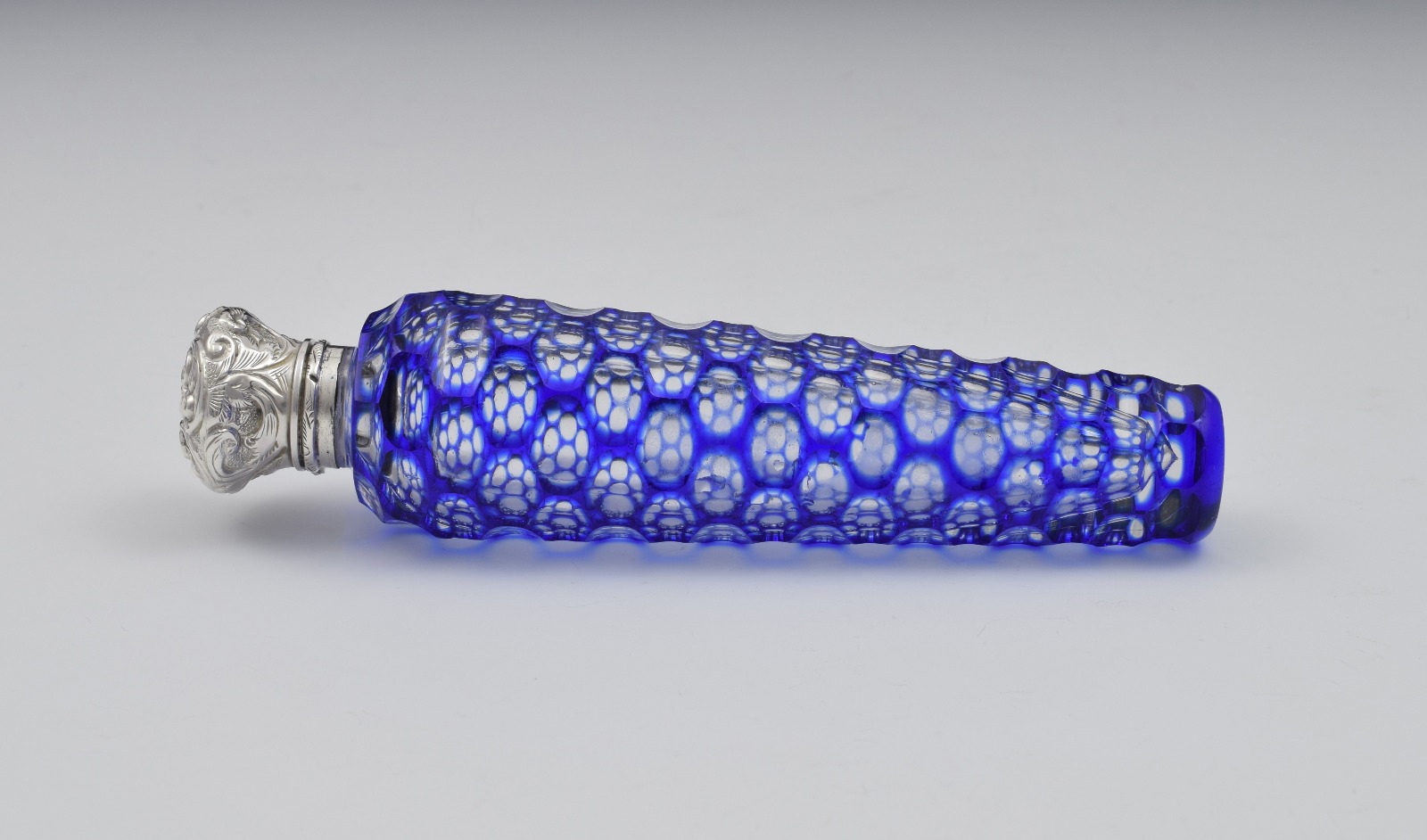 Large Victorian Blue Cut-To-Clear Glass & Silver Scent Bottle (1 of 1)