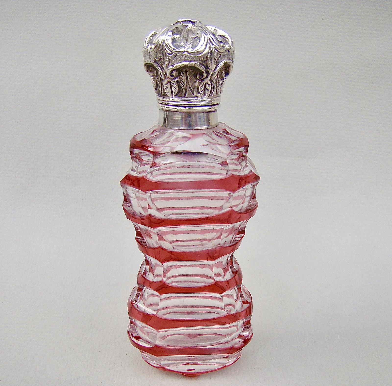 Large Victorian Bohemian Overlay Cranberry Glass Scent Bottle c.1870