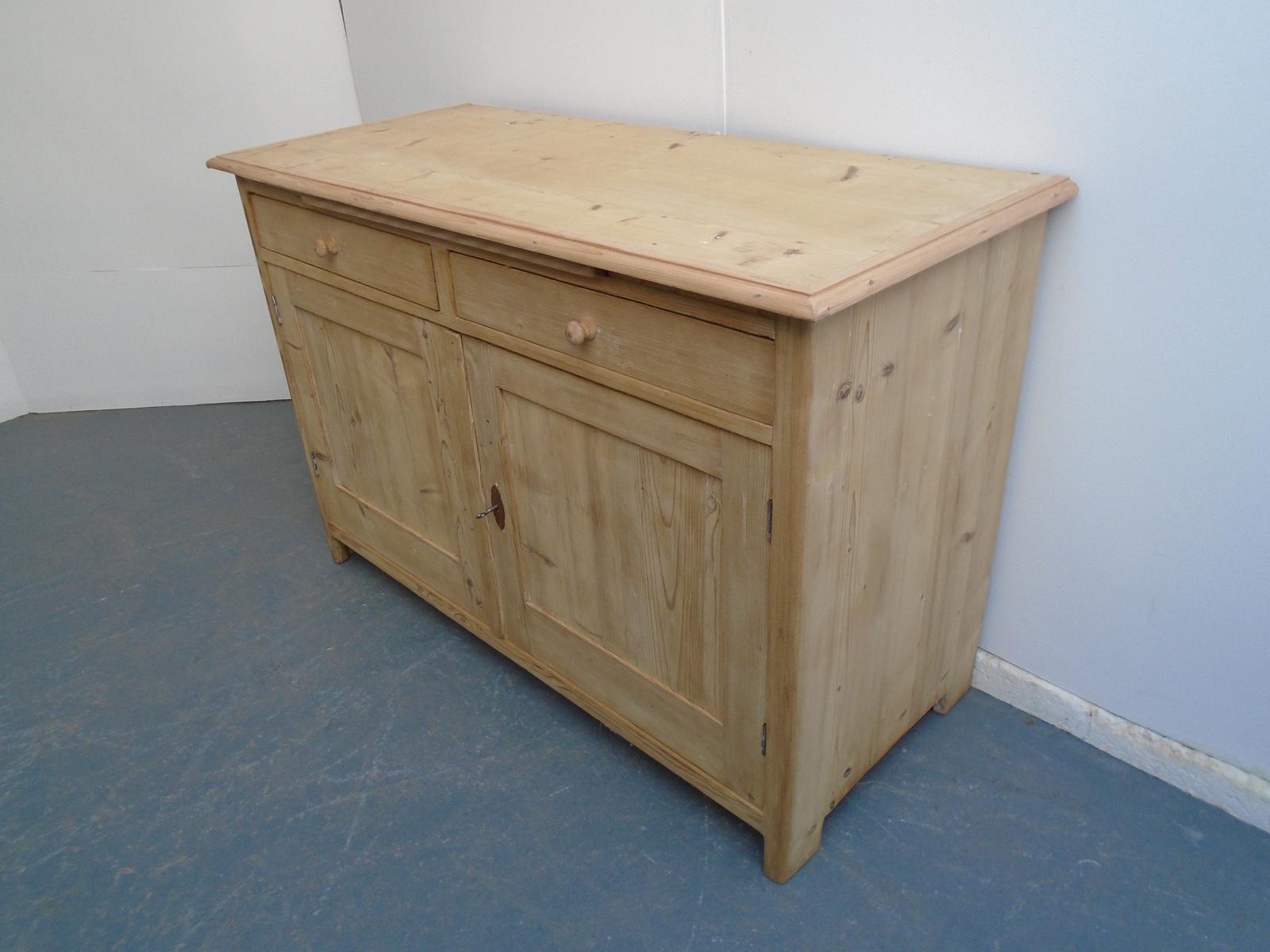 Large Victorian Bread Slide 2 Door Kitchen Dresser Base wax / paint