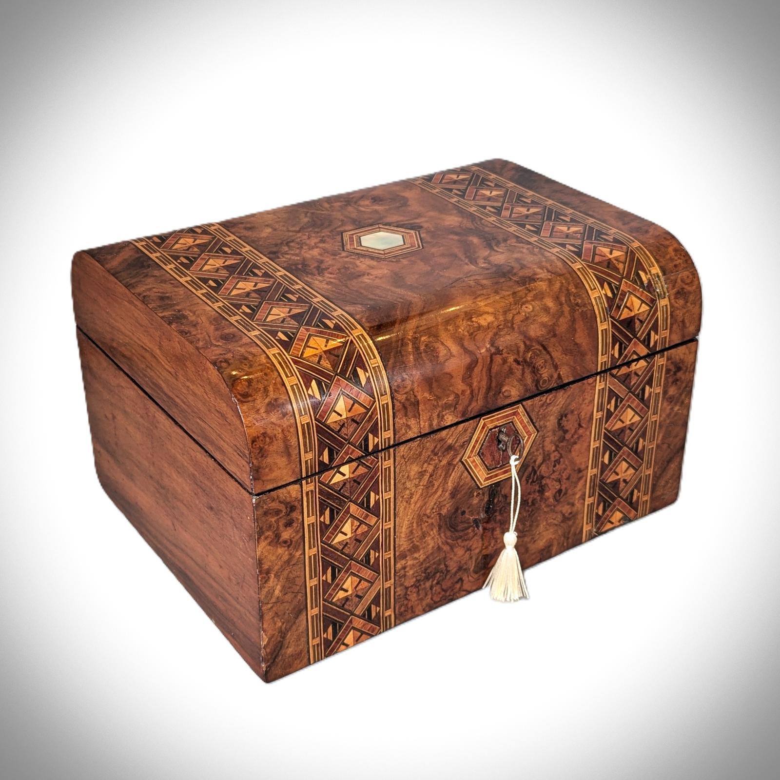 Large Victorian Burr Walnut & Inlaid Jewellery Box