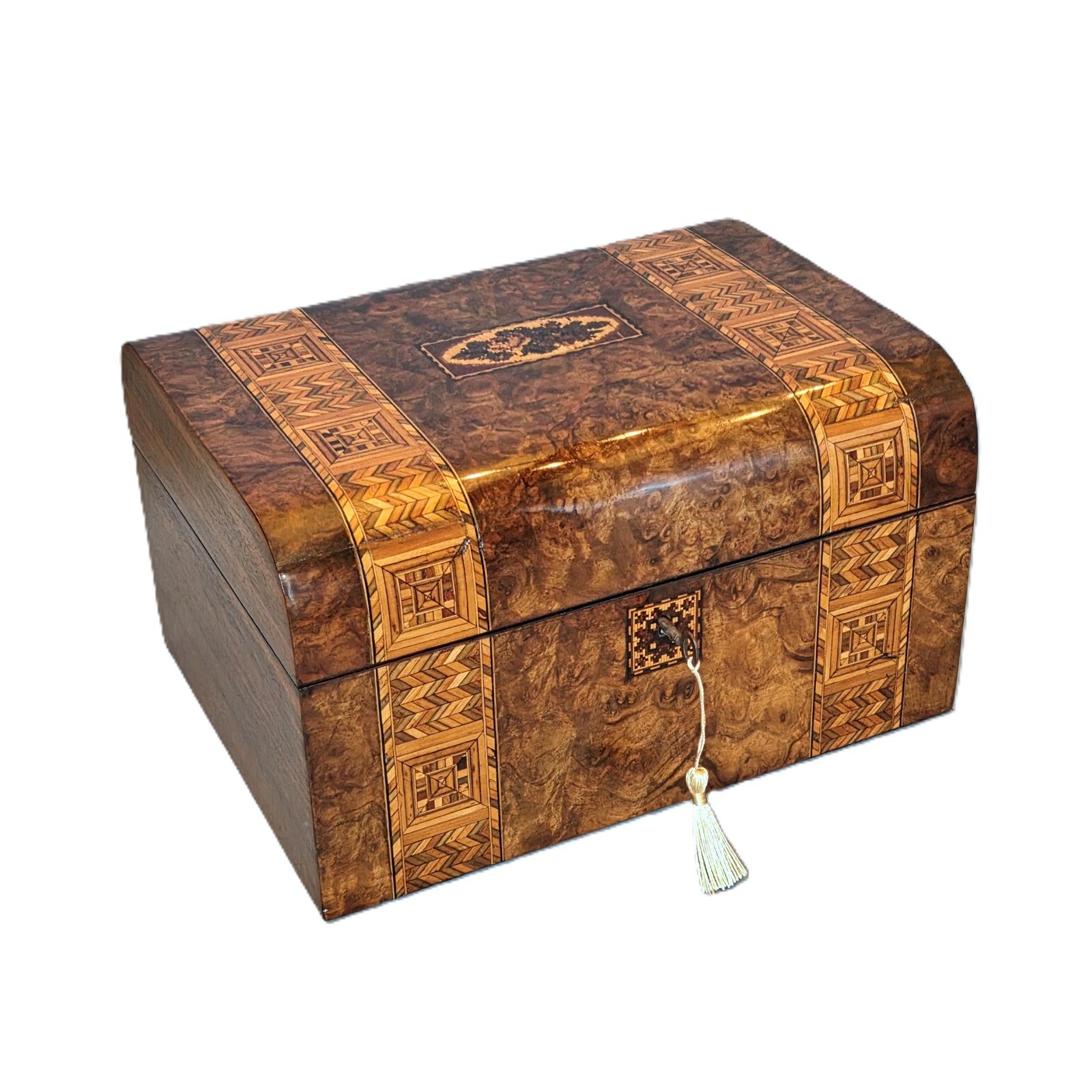 Large Victorian Burr Walnut & Inlaid Jewellery Box