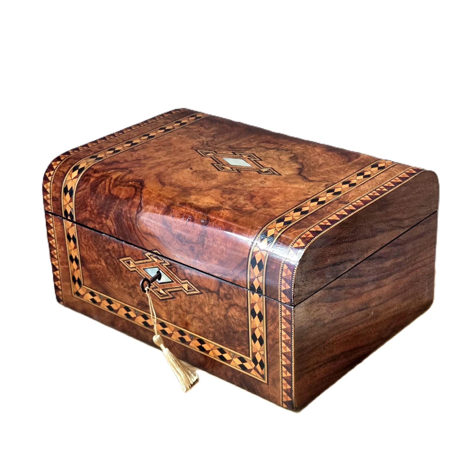 Large Victorian Burr Walnut & Inlaid Jewellery Box