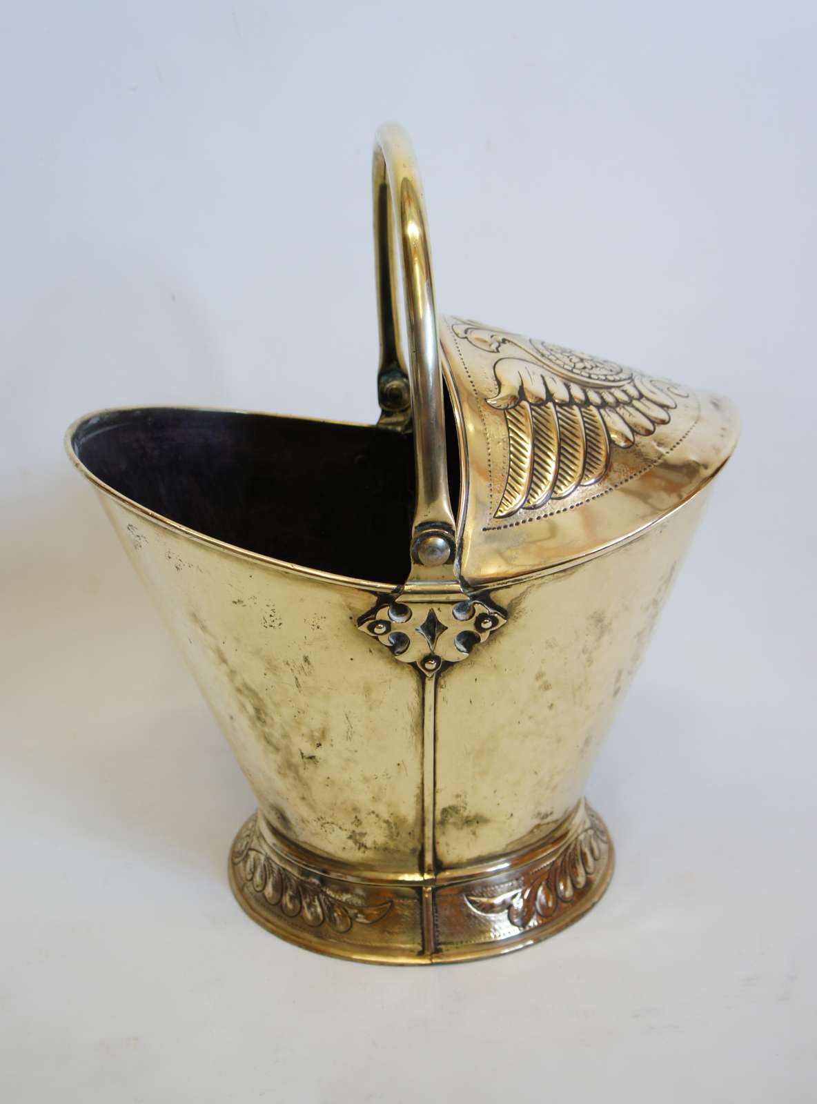 Large Victorian Decorated Brass Coal Scuttle, Sturdy, Clean, Well Made
