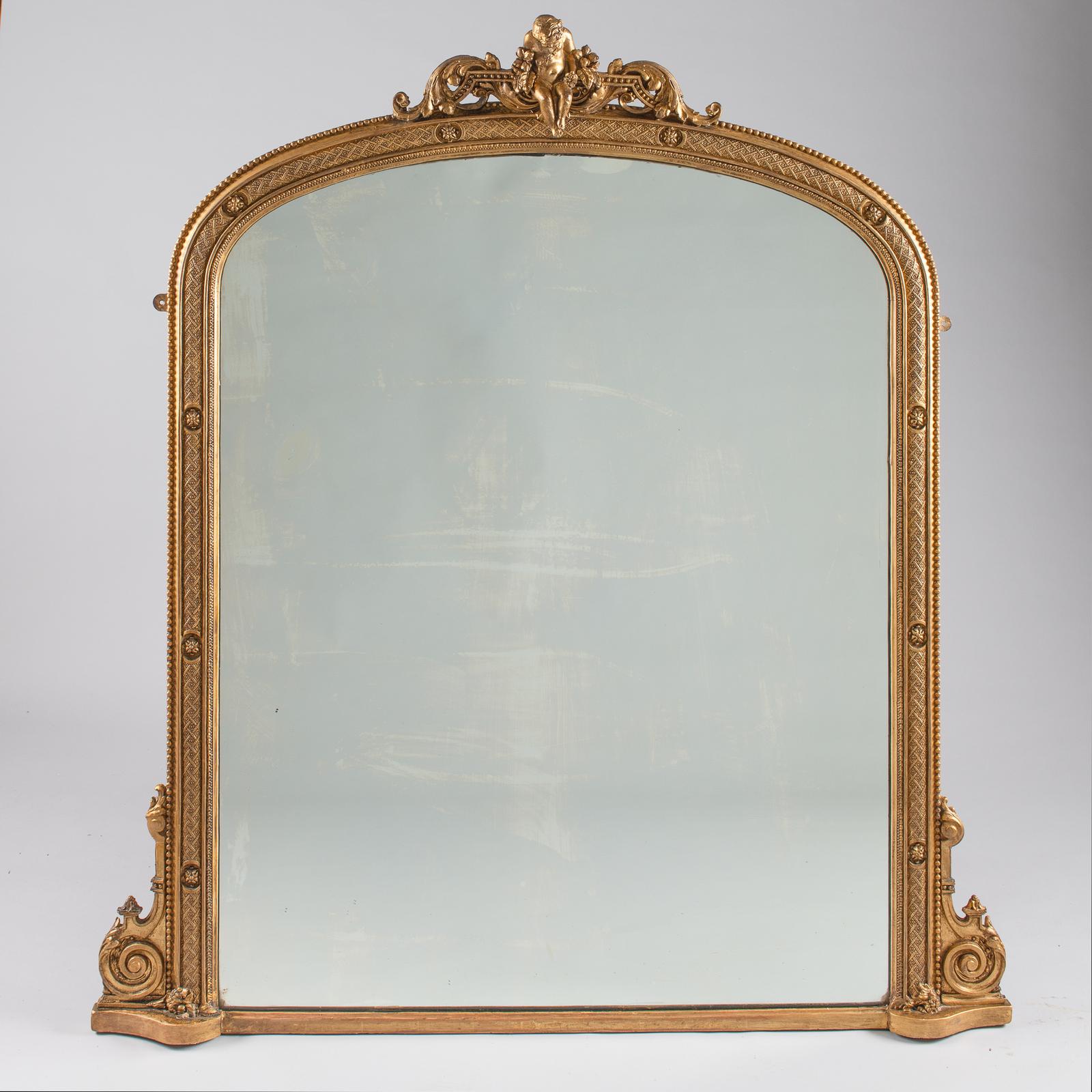 Large Victorian English Gilt Archtop Overmantle Mirror (1 of 7)
