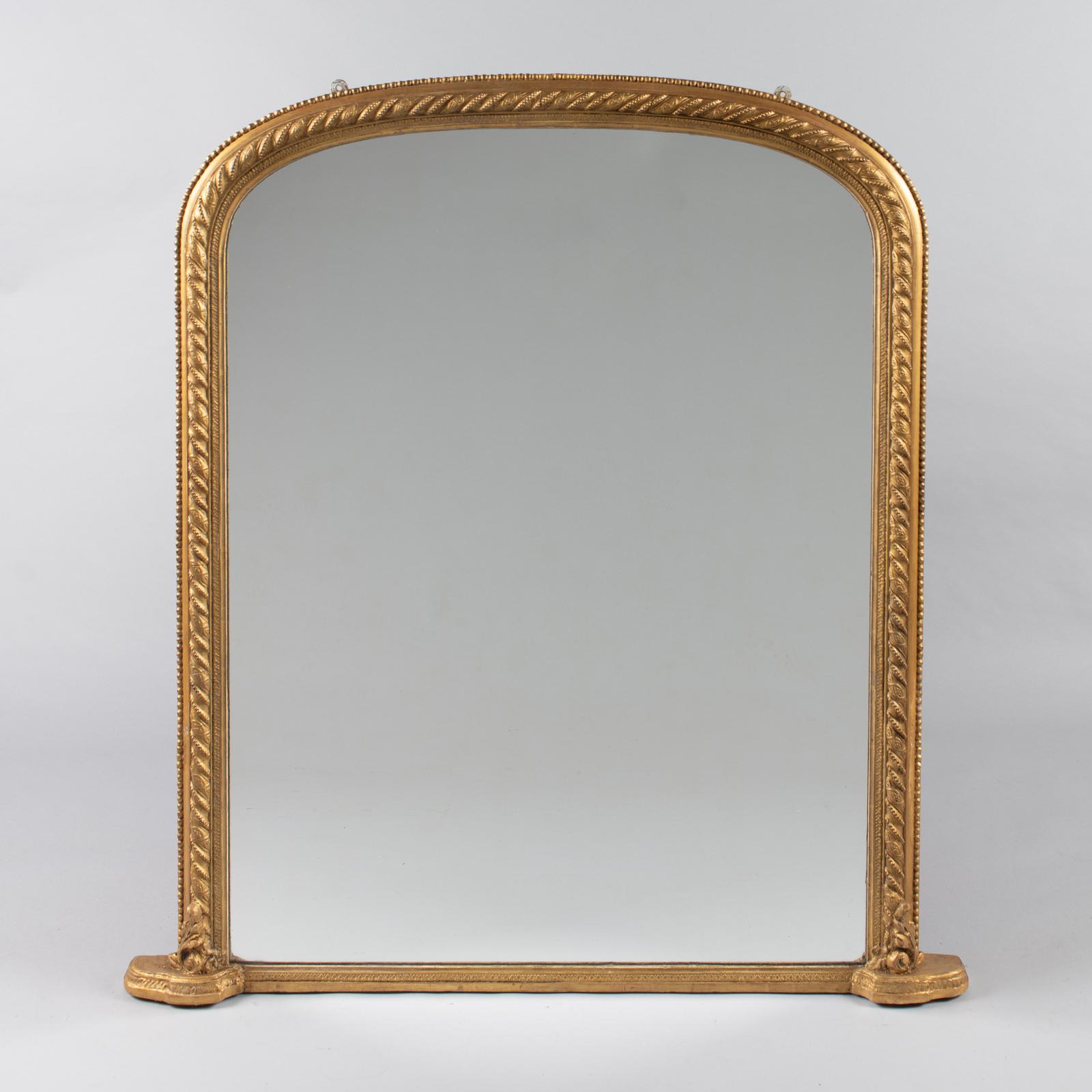 Large Victorian English Gilt Overmantle Mirror (1 of 10)