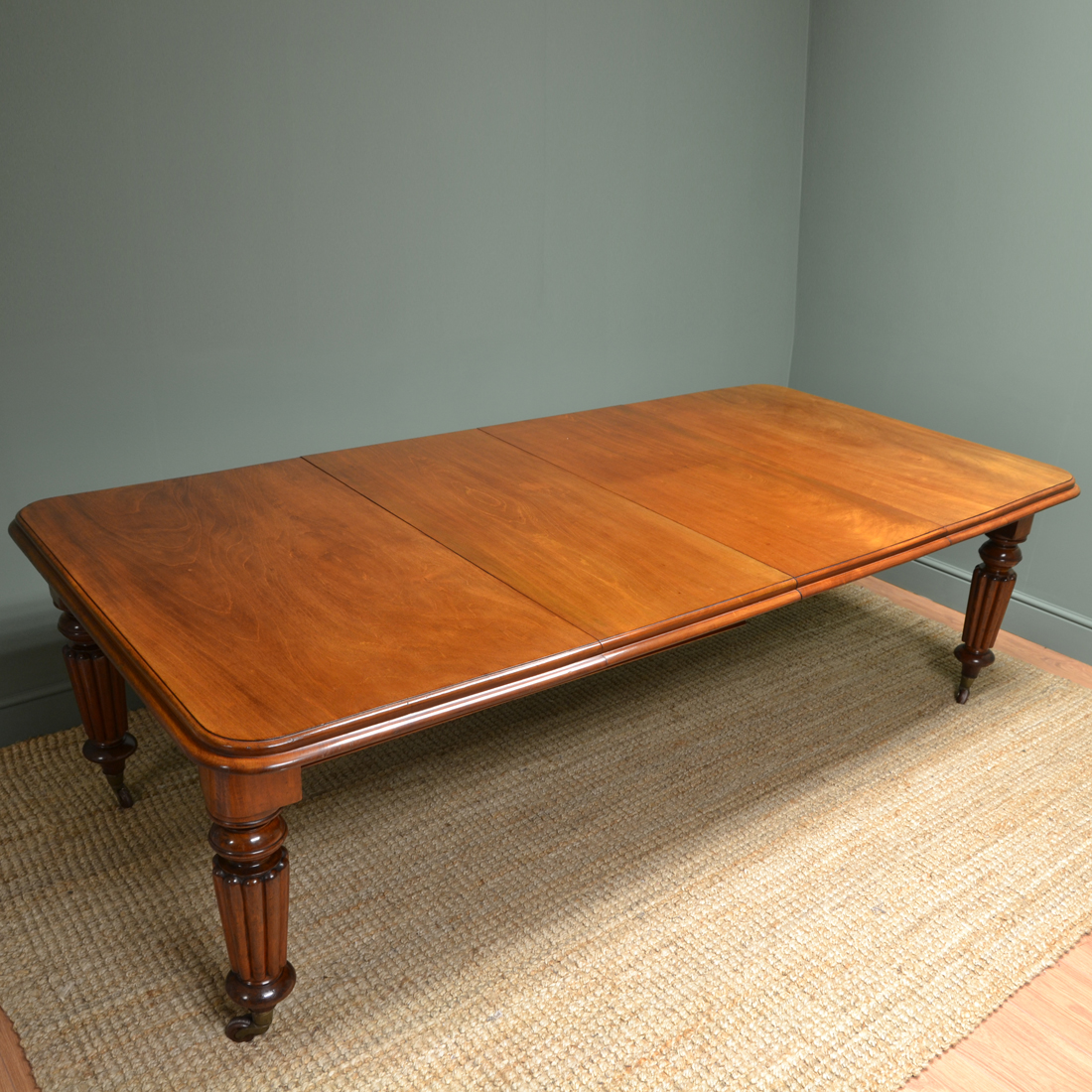 Large Victorian Figured Mahogany Antique Wind Out Dining Table