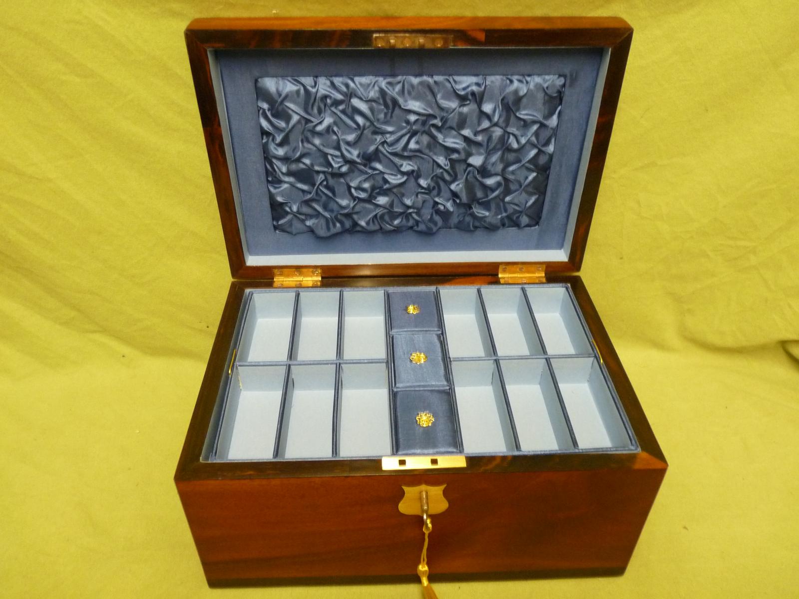 Large Victorian Flame Mahogany Jewellery Box + Tray c.1870