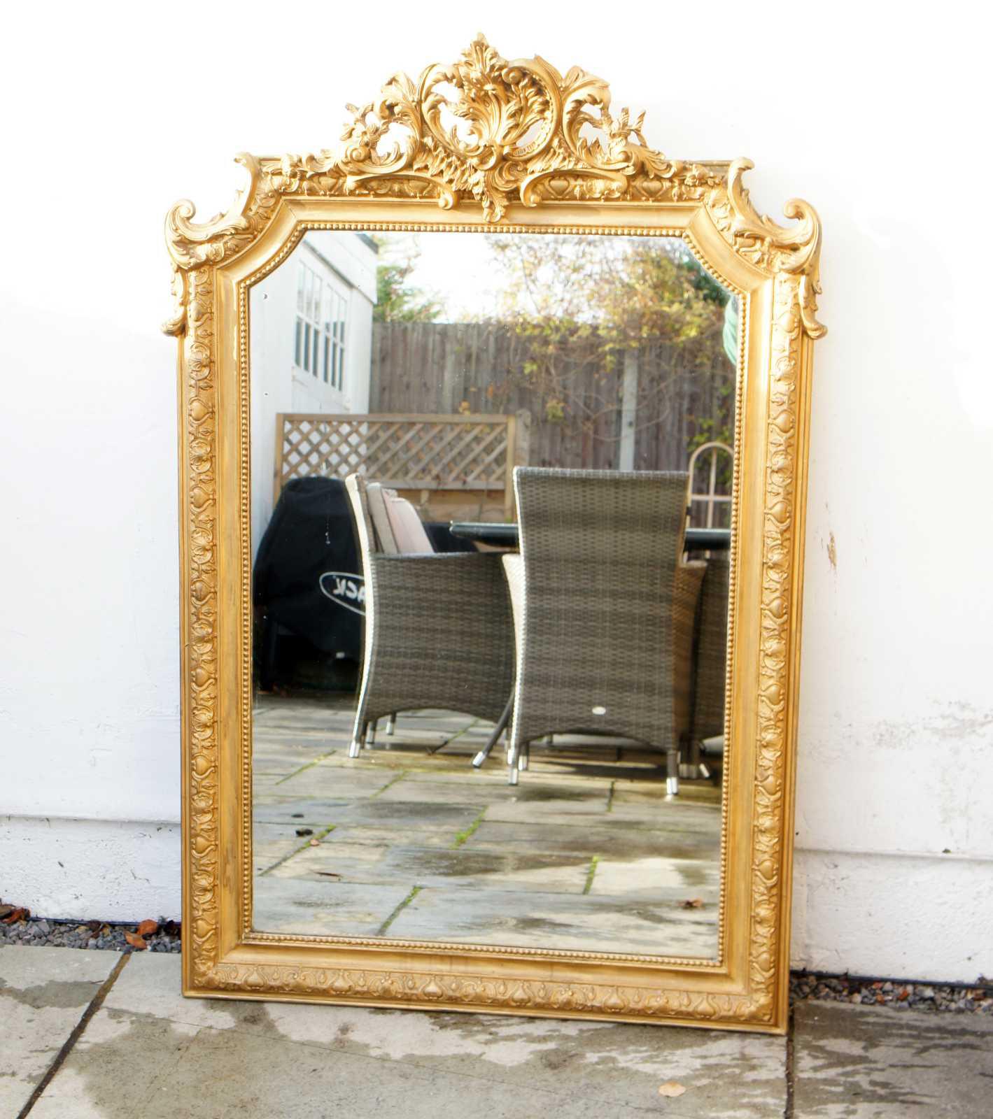 Large Victorian Giltwood & Gesso Arched Overmantle Mirror