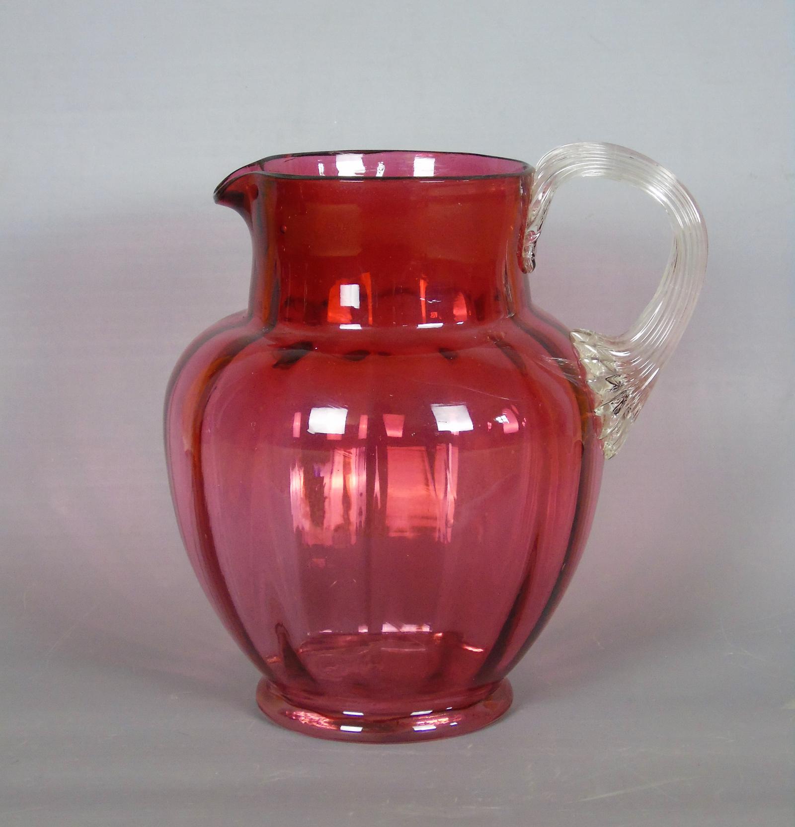 Large Victorian Hand Blown Cranberry Jug (1 of 6)
