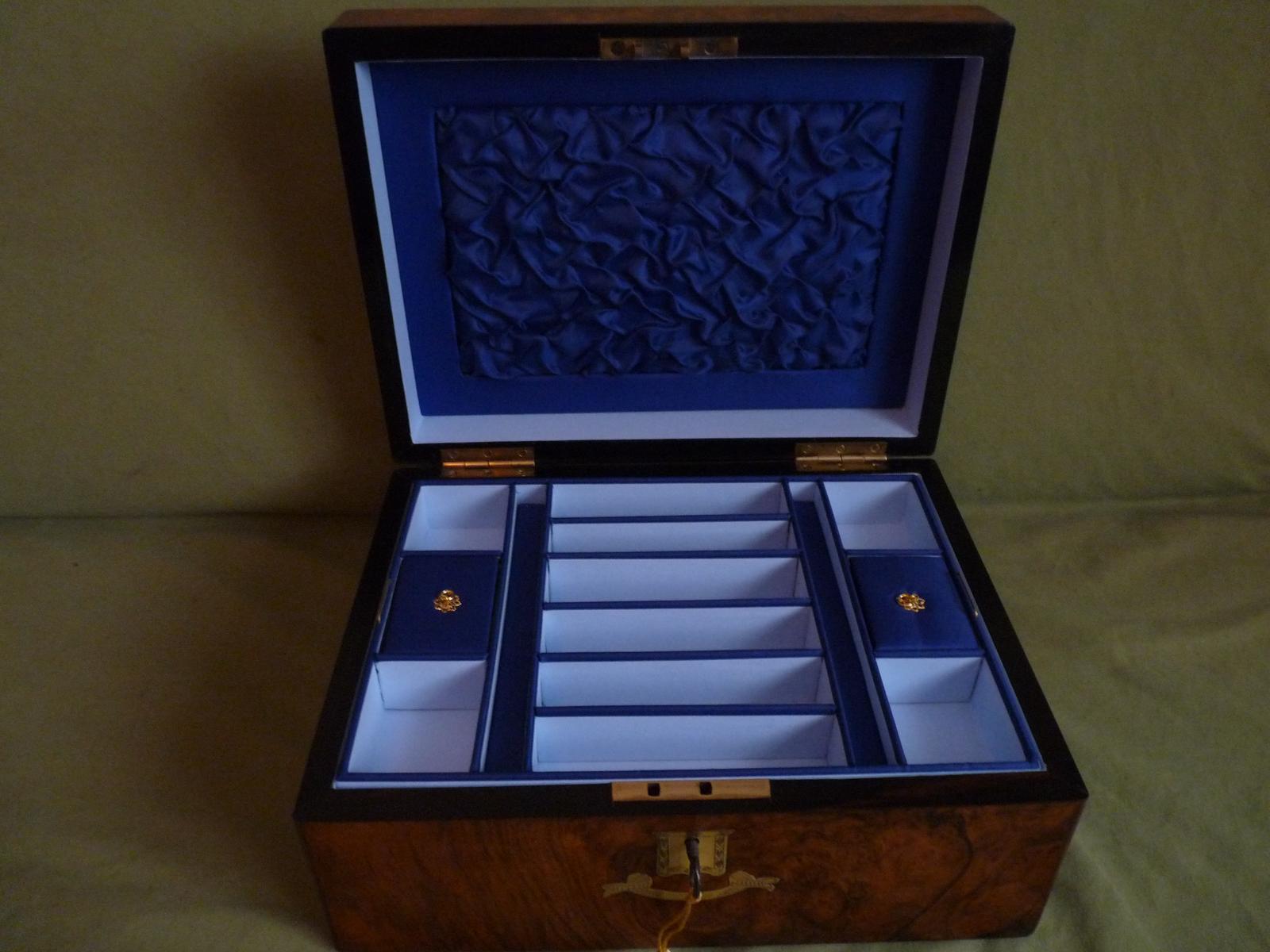 Large Victorian Inlaid Figured Walnut Jewellery Box + Tray c.1870