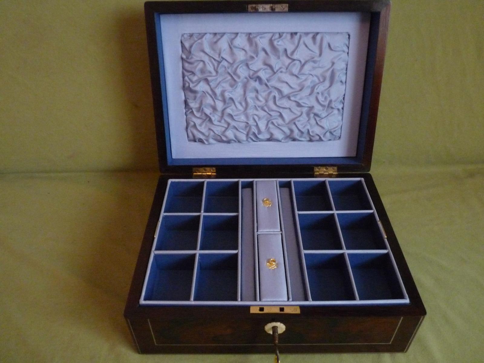 Large Victorian Inlaid Rosewood Jewellery Box + Tray c.1840
