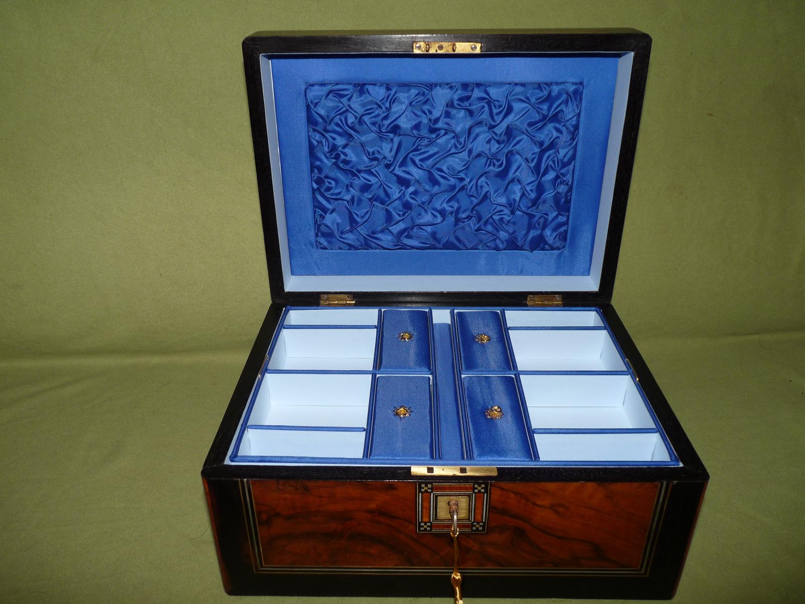 Large Victorian Inlaid Walnut & Coromandel Jewellery Box + Tray c.1875