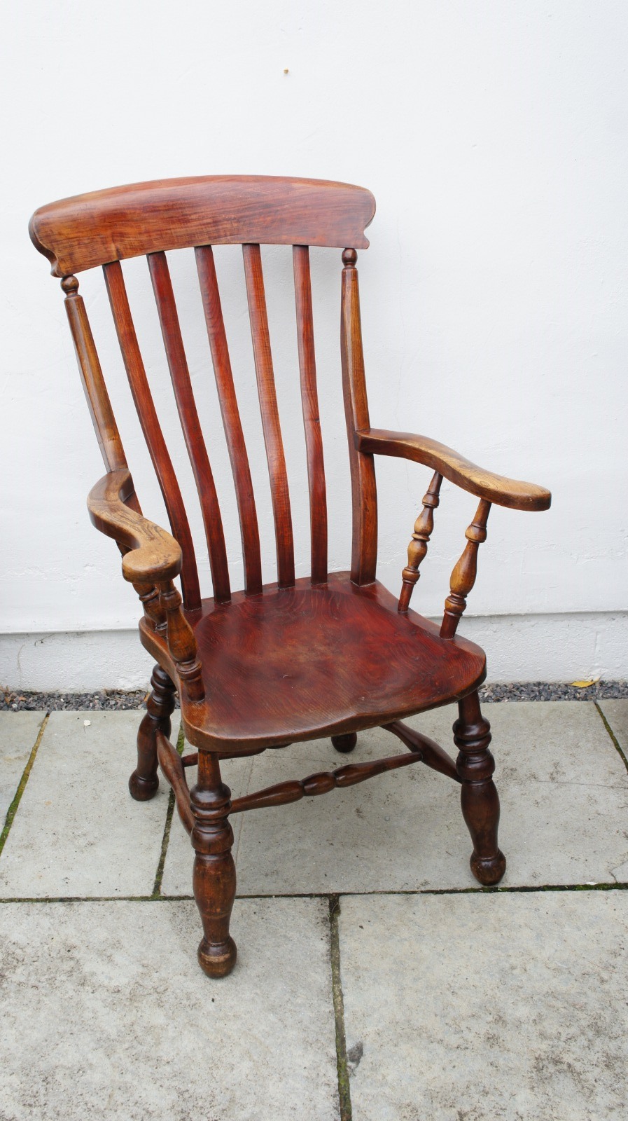 Large Victorian Lath-Back, Country, Windsor Armchair Elm / Beech Wide Seat, Clean