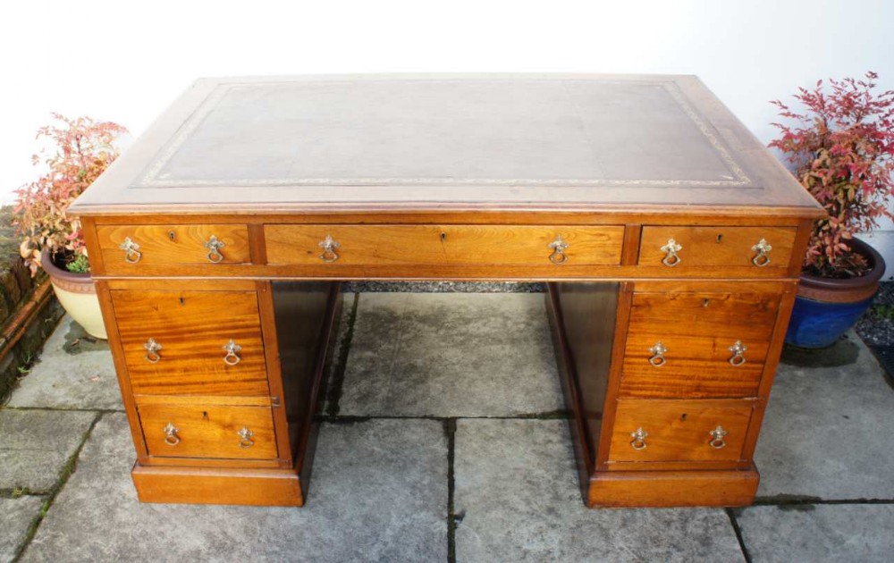 Large Victorian Mahogany 7 Drawer Pedestal Desk, Leather Top - Refurbished