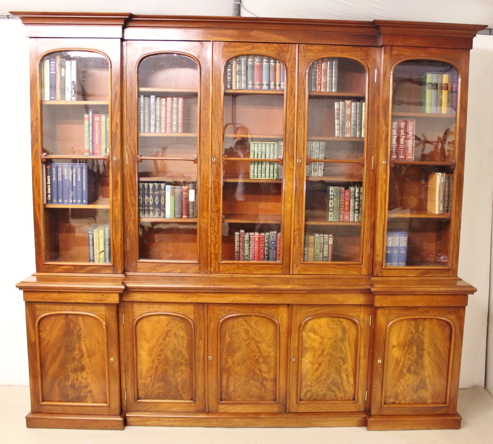 Large Victorian Mahogany Breakfront Library Bookcase c.1845