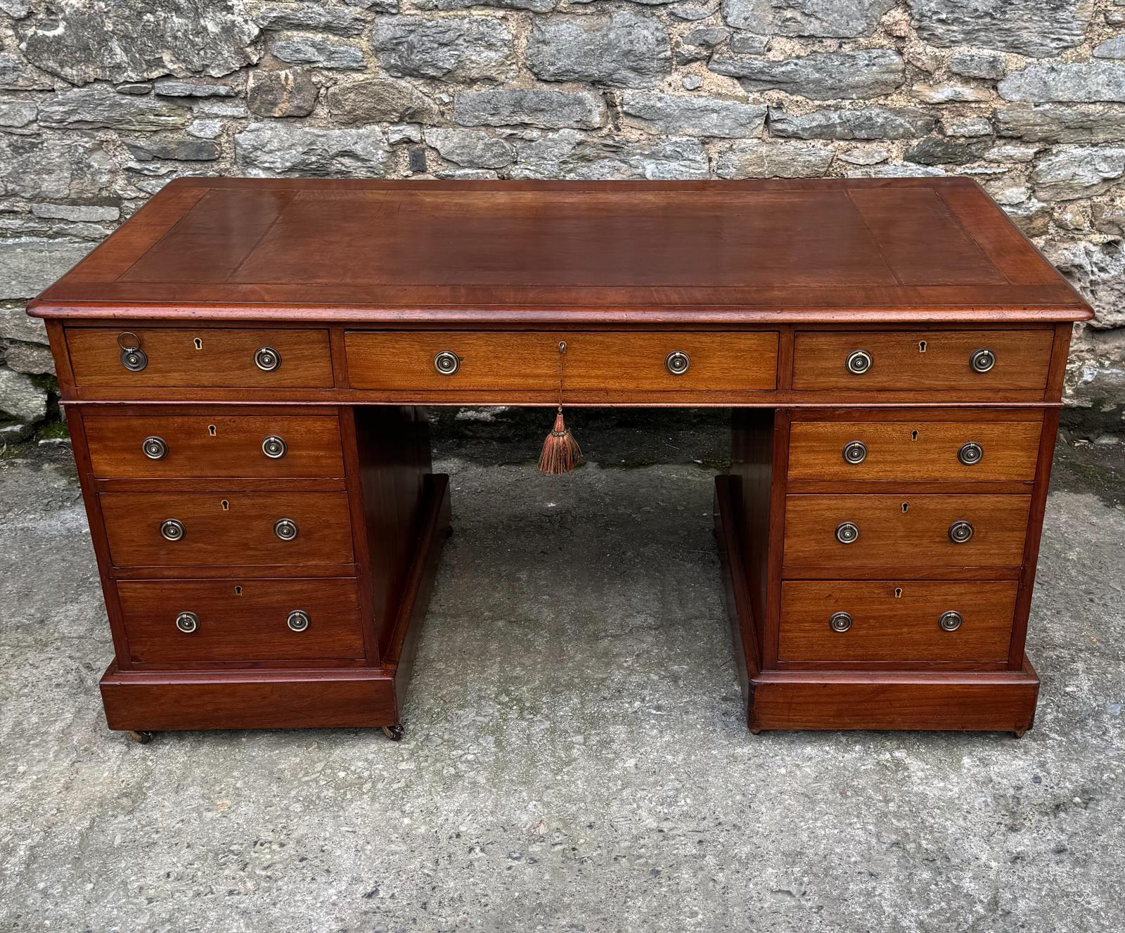 Large Victorian Mahogany Pedestal Desk