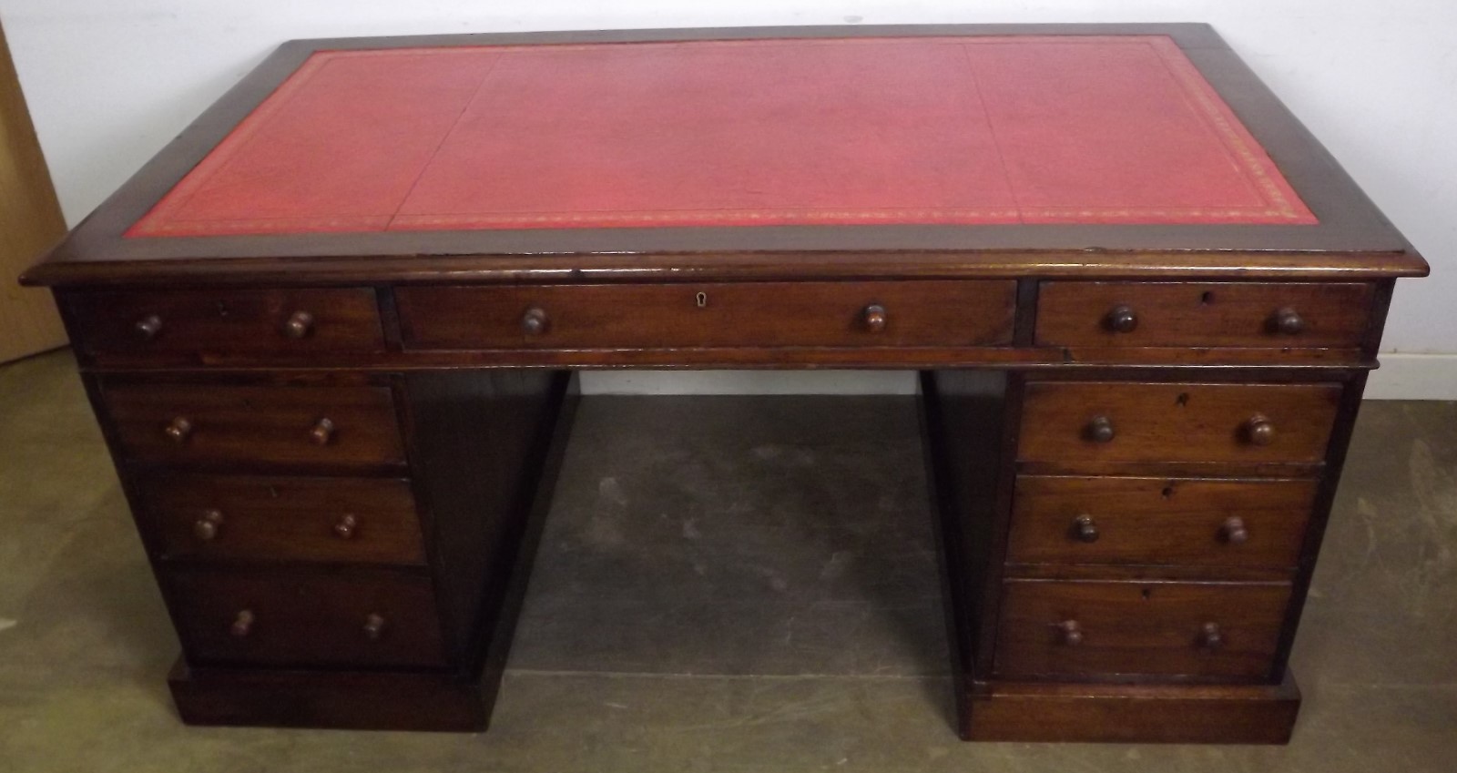 Large Victorian Mahogany Pedestal Writing Desk c.1870