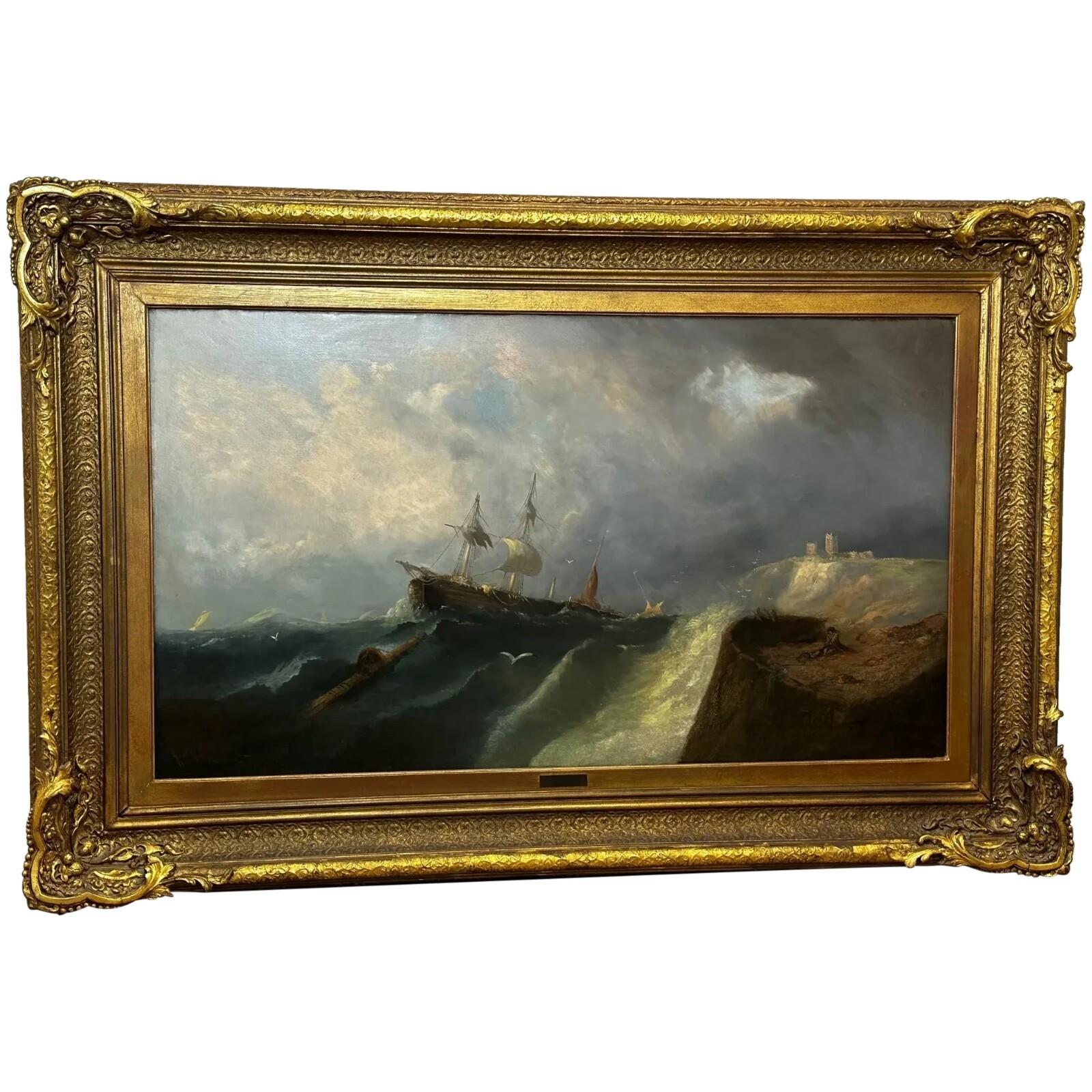 Antique Victorian Landscape Oil Painting – Snowdon / Yr Wyddfa, Wales, Storm Clearing with Rainbow – Charles Leslie (1878)