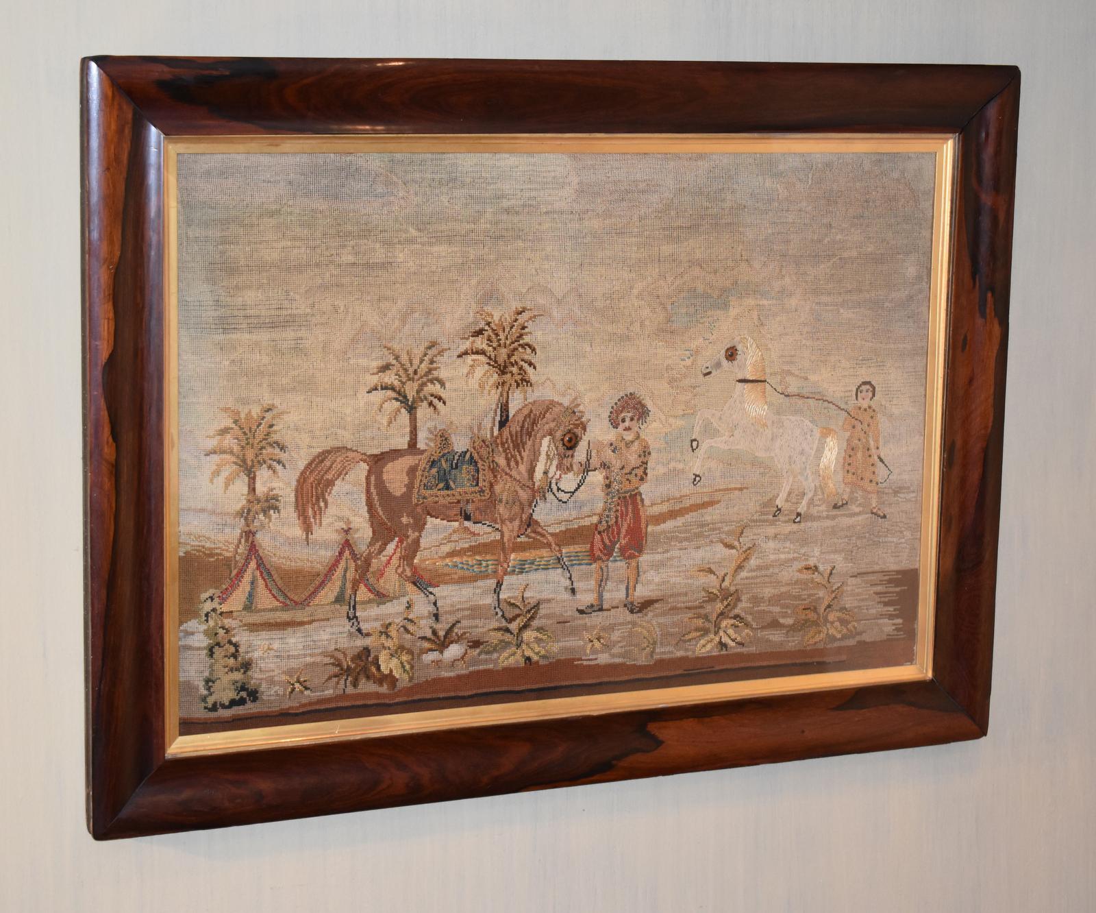 Large Victorian Needlework of Arabian Horses