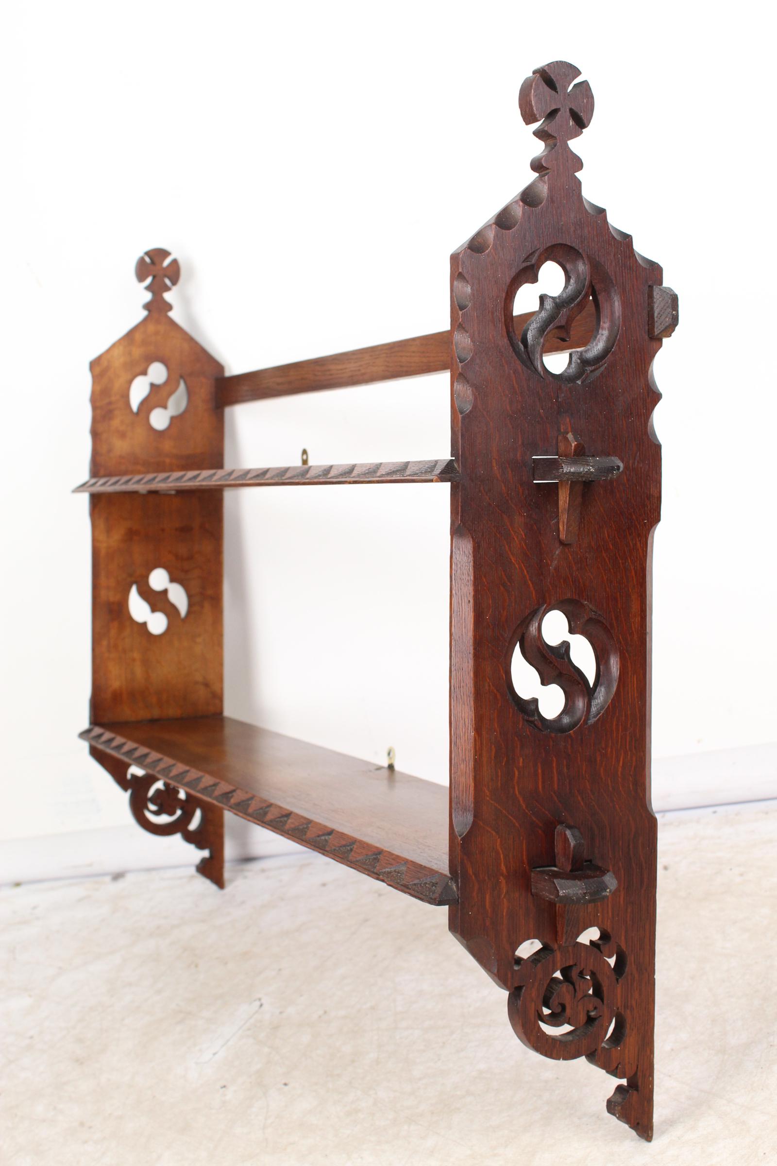 Large Victorian Oak Gothic Revival Hanging Wall Shelves (1 of 13)