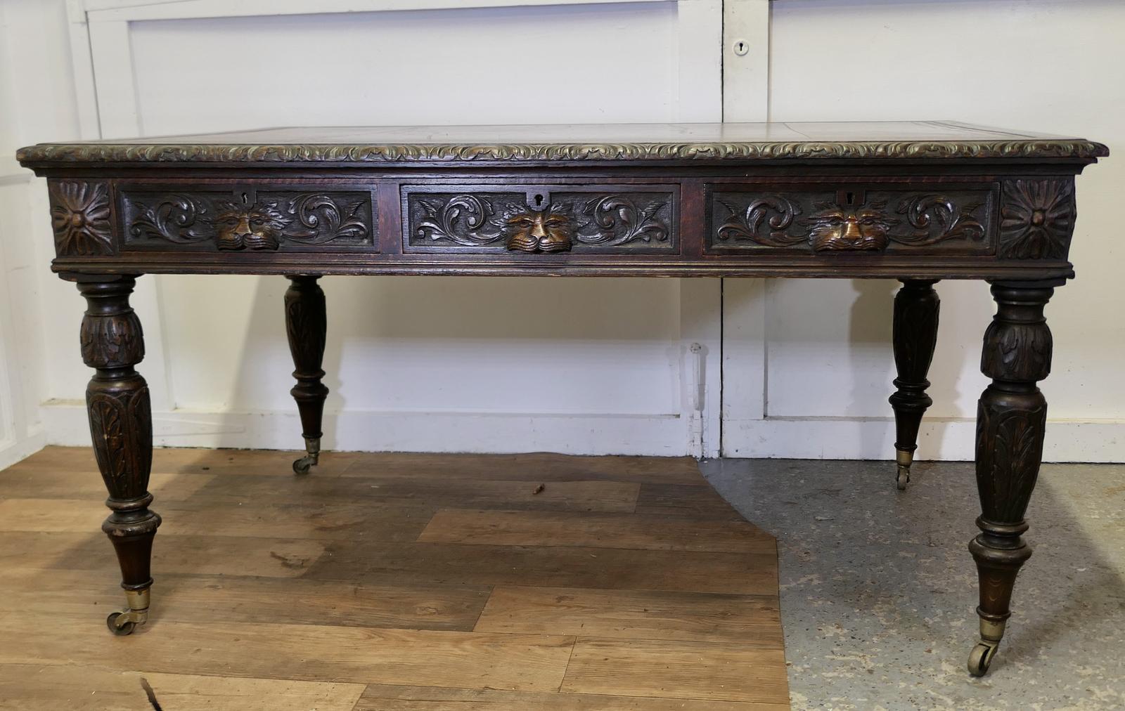Large Victorian Oak Leather Top Partners Desk, Edwards & Roberts Library Table
