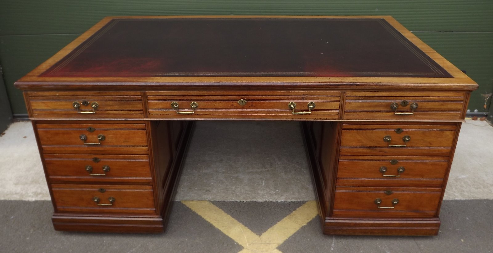 Large Victorian Pedestal Leather Topped Partners Desk c.1880