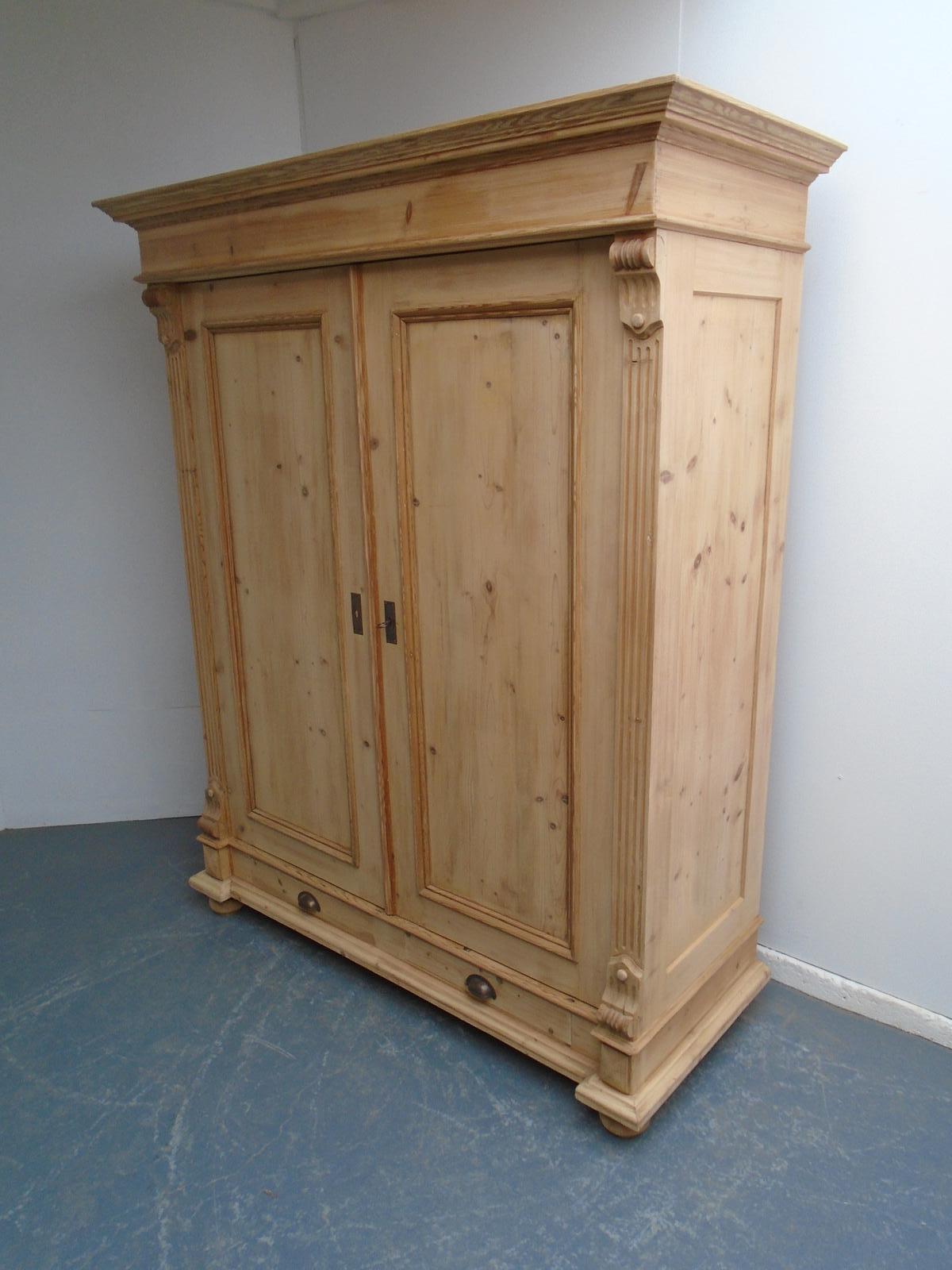 Large Victorian Shelved Antique Pine Linen Knockdown Wardrobe to wax / paint