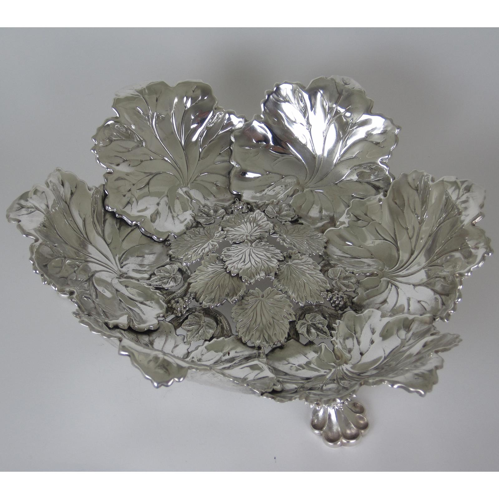 Large Victorian Silver Plated Fruit Bowl with Vine Leaf Sides