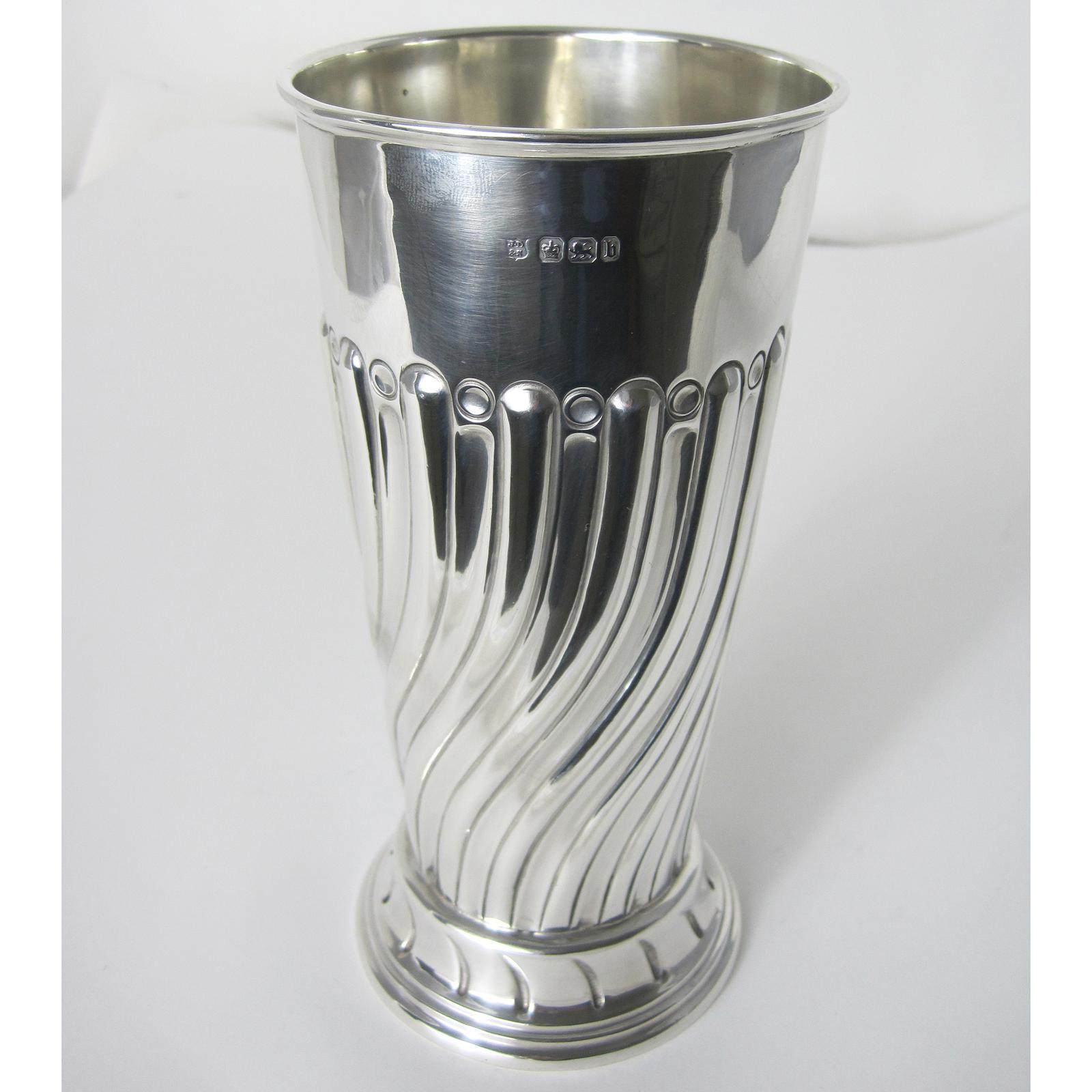 Large Victorian Silver Vase with Trumpet Shaped Body