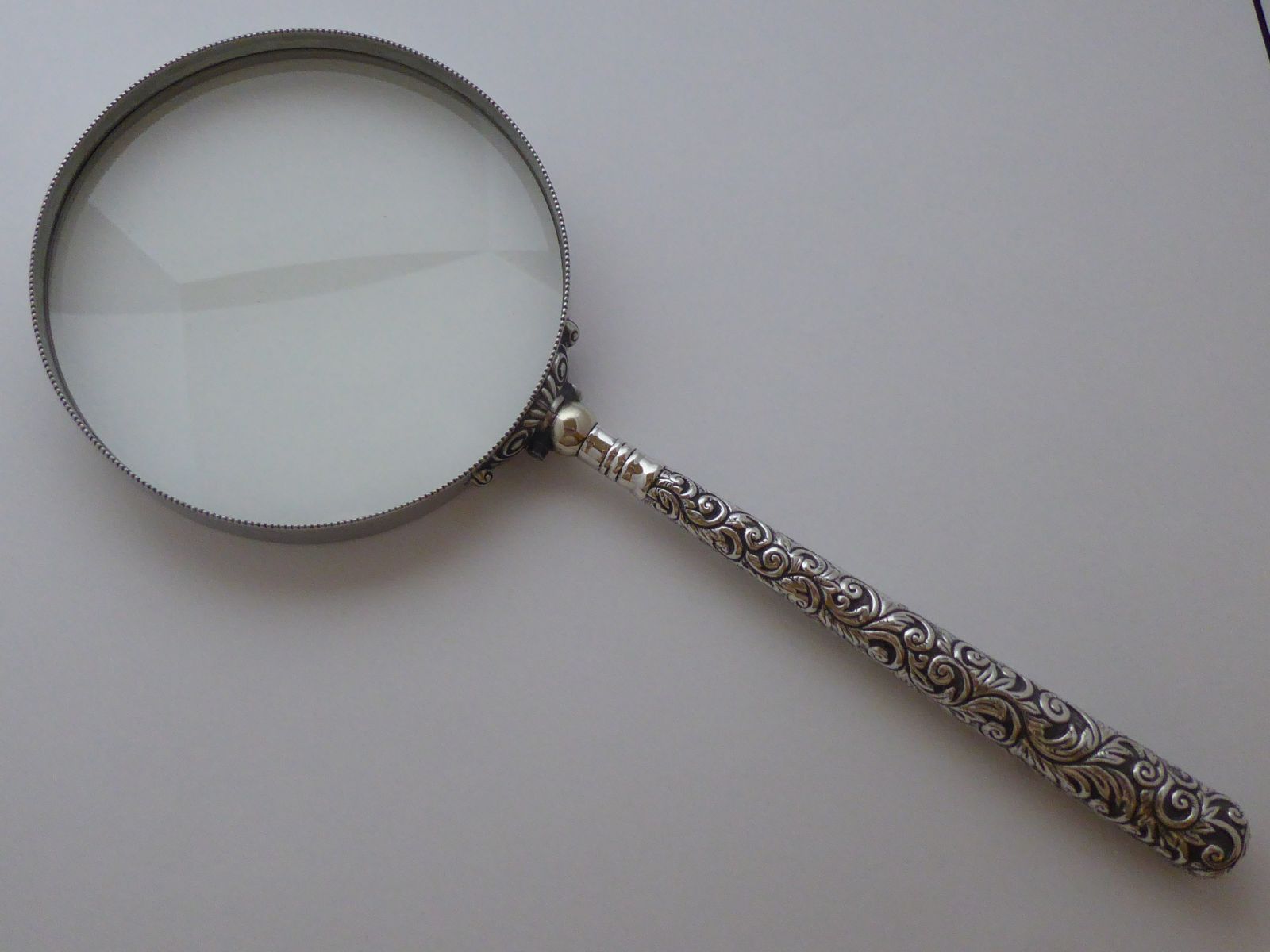Large Victorian Solid Hallmarked Silver Hand Magnifying Glass Birmingham 1895