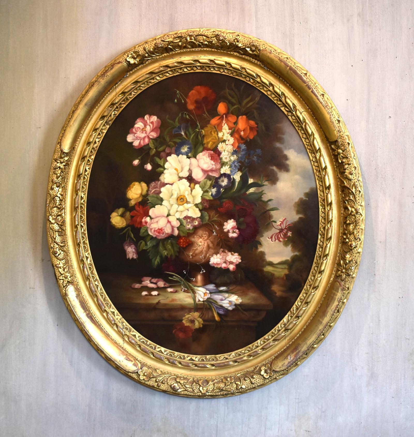 Large Victorian Still Life Oil Painting of a Vase of Flowers (1 of 7)
