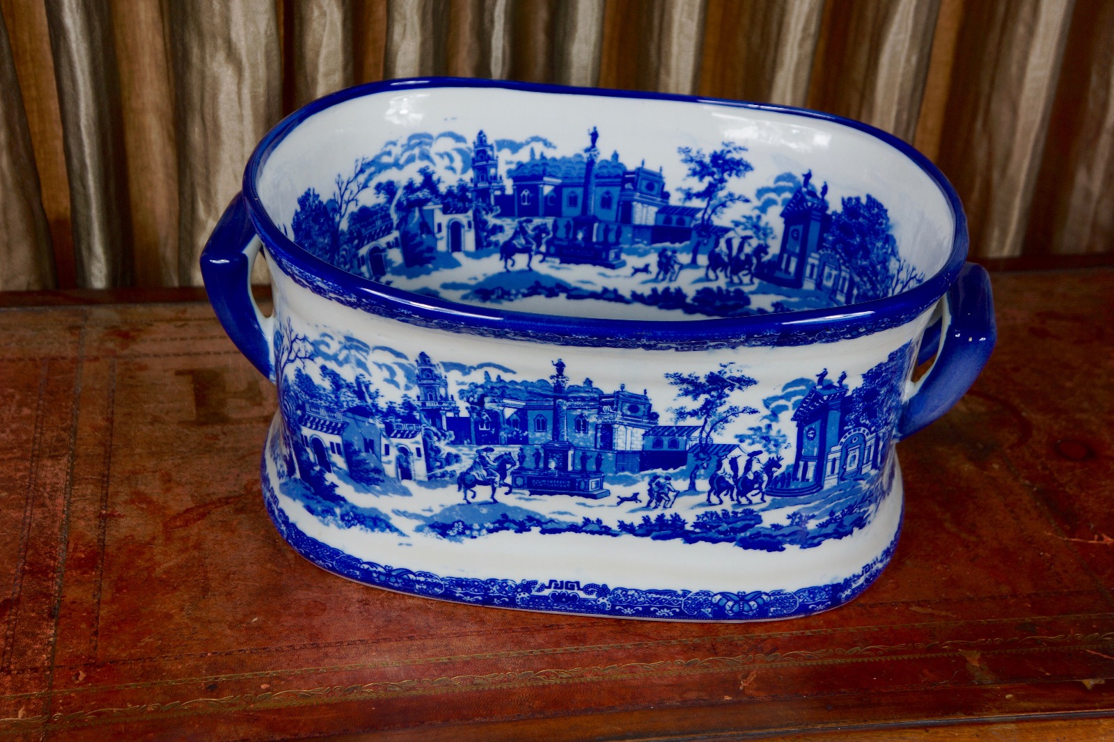 Large Victorian Syle Stoneware Blue & White Jardiniere / Foot Bath