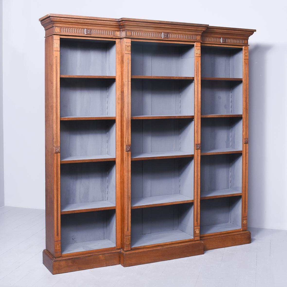 Large Victorian Walnut Breakfront Open Bookcase (1 of 9)