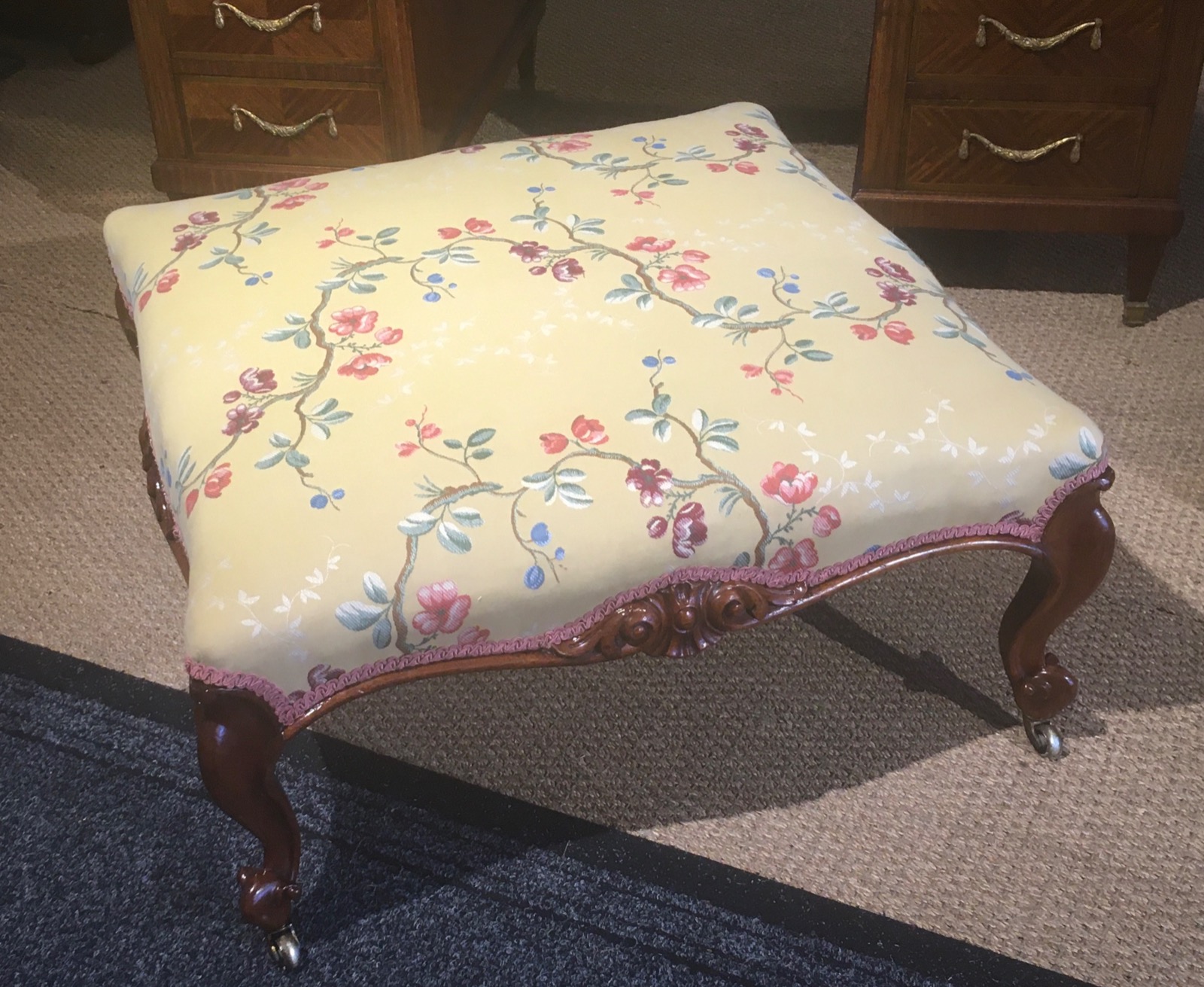 Large Victorian Walnut Framed Stool