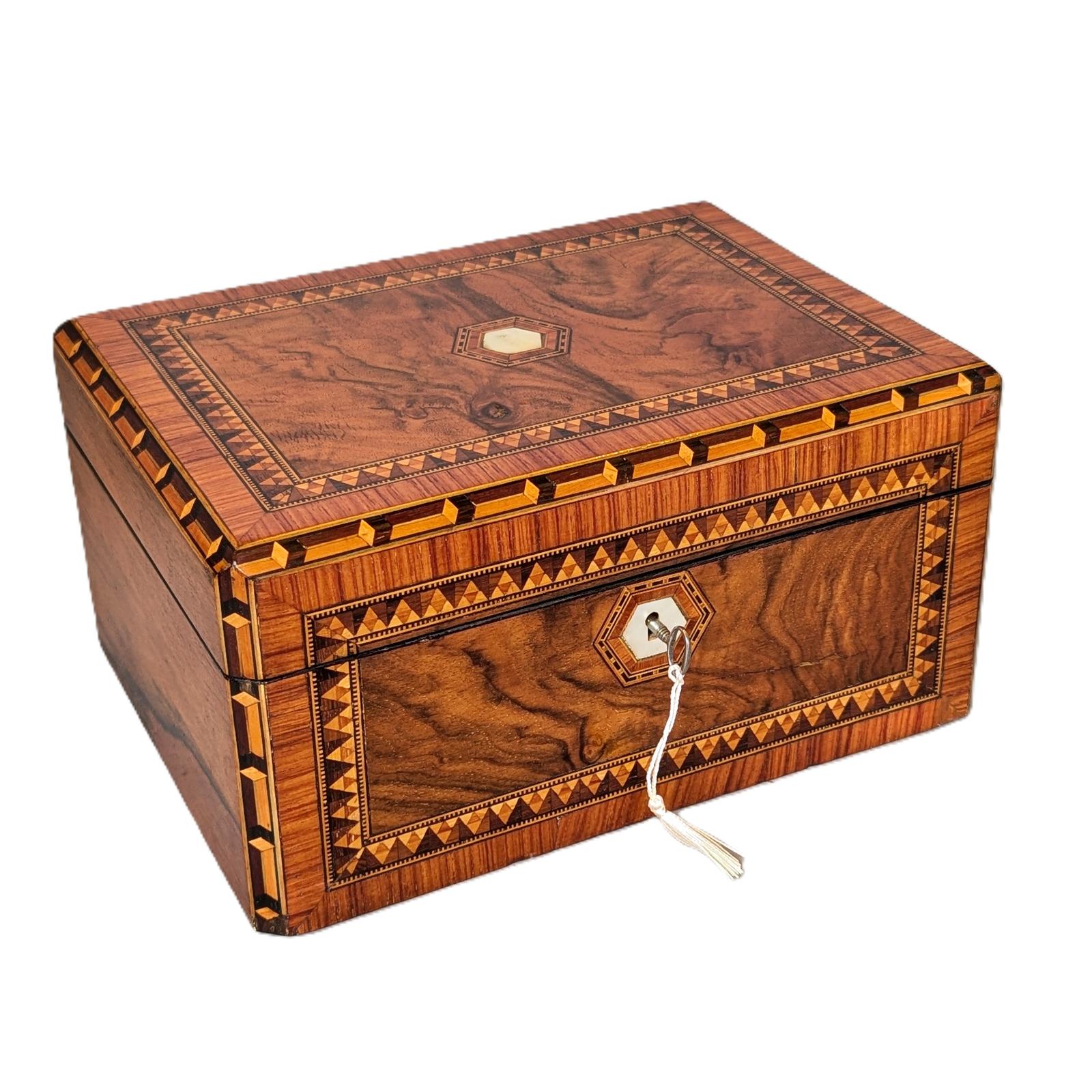 Large Victorian Walnut & Inlaid Jewellery Box
