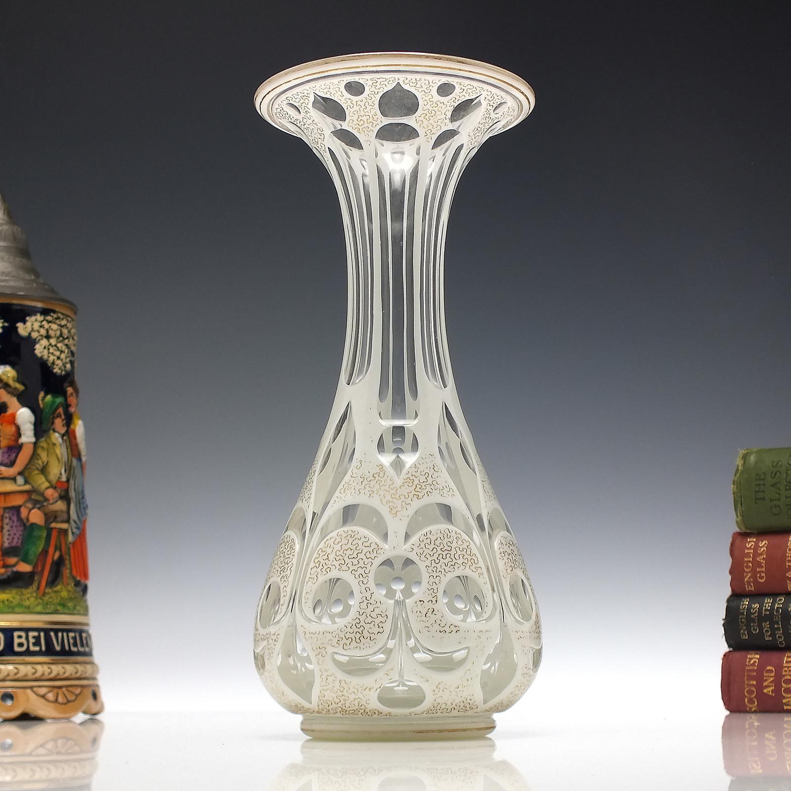 Large Victorian White Cased & Gilded Glass Vase c.1860