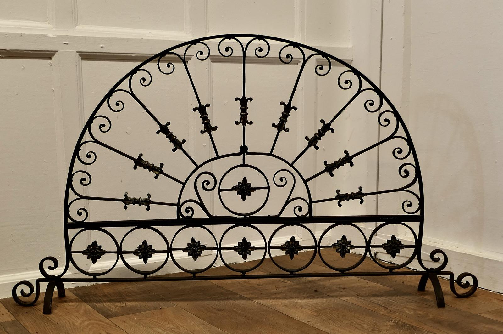 Large Victorian Wrought Iron Fan Shaped Fire Screen