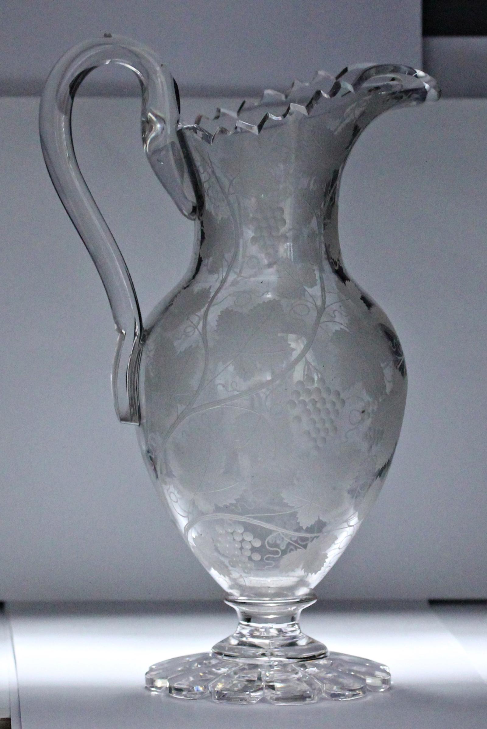 Large, vine-engraved, Victorian, English 'possibly Stourbridge' ewer or claret jug