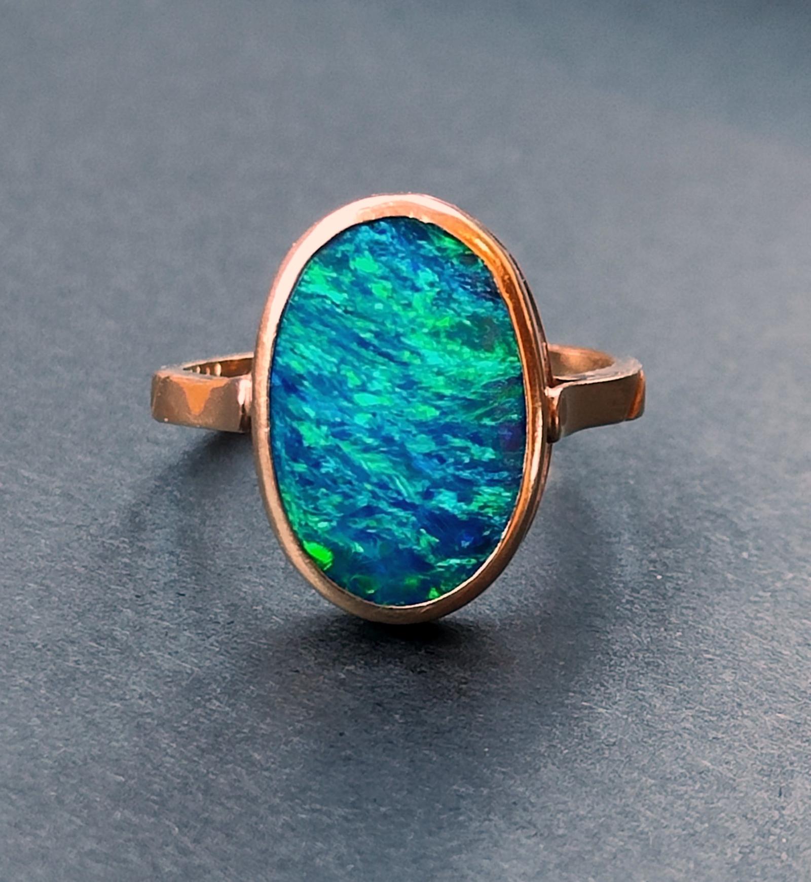 Large Vintage 9ct Gold Australian Black Opal Doublet Ring