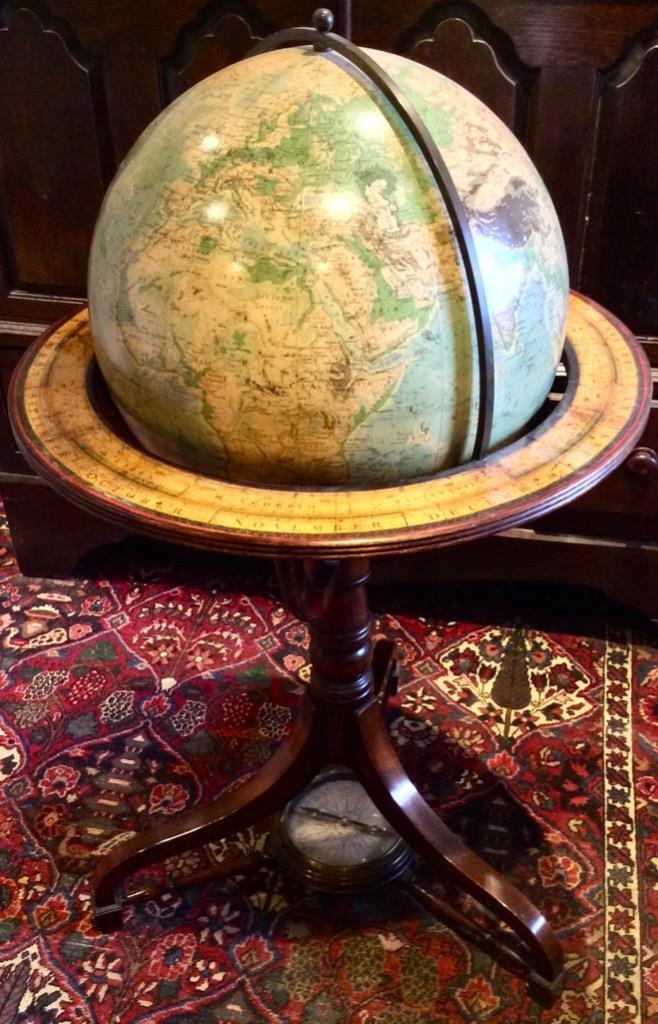 Large Vintage Georama Terrestrial World Globe On Mahogany Stand + Compass