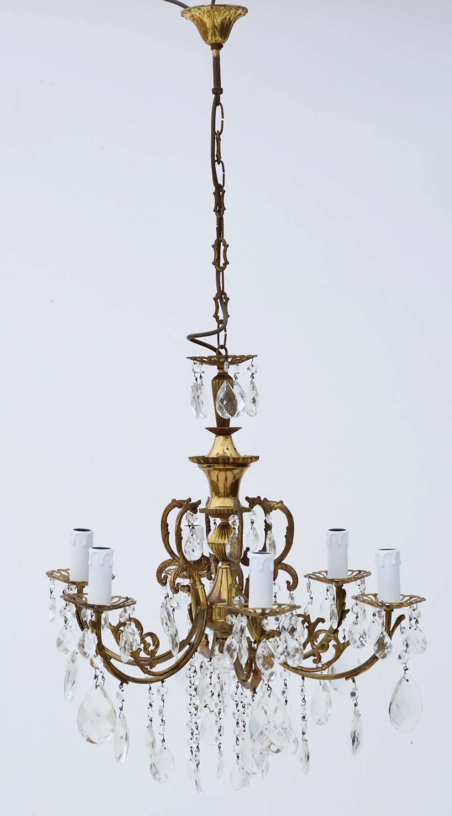 Large Vintage Ormolu Brass 6 Arm / Lamp Crystal Chandelier (1 of 7)
