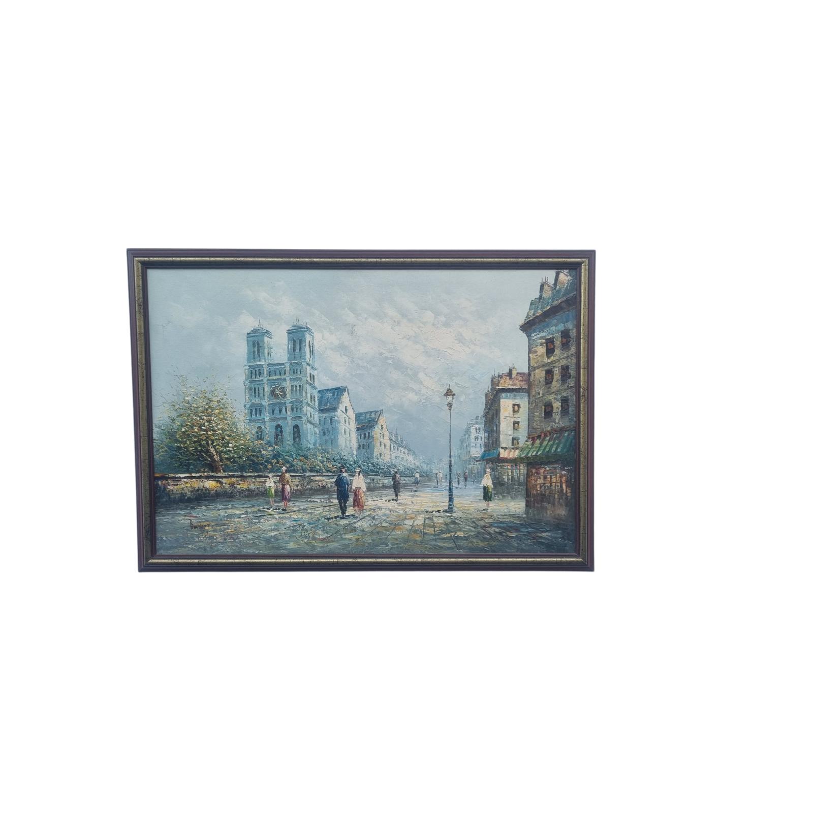 Large Vintage Paris Street Scene Oil Painting – Signed Burnett – Notre Dame – Impressionist Style – 90cm x 60cm