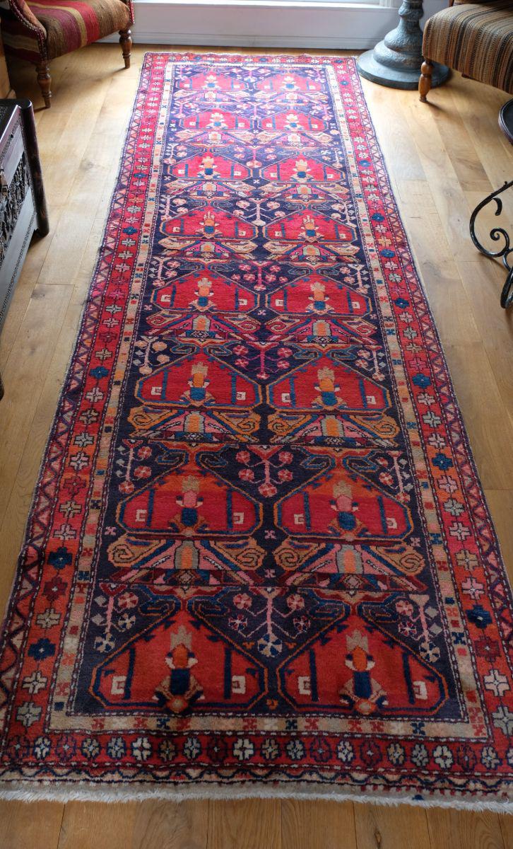 Large Vintage Persian Hall Runner with a Red & Blue Ground
