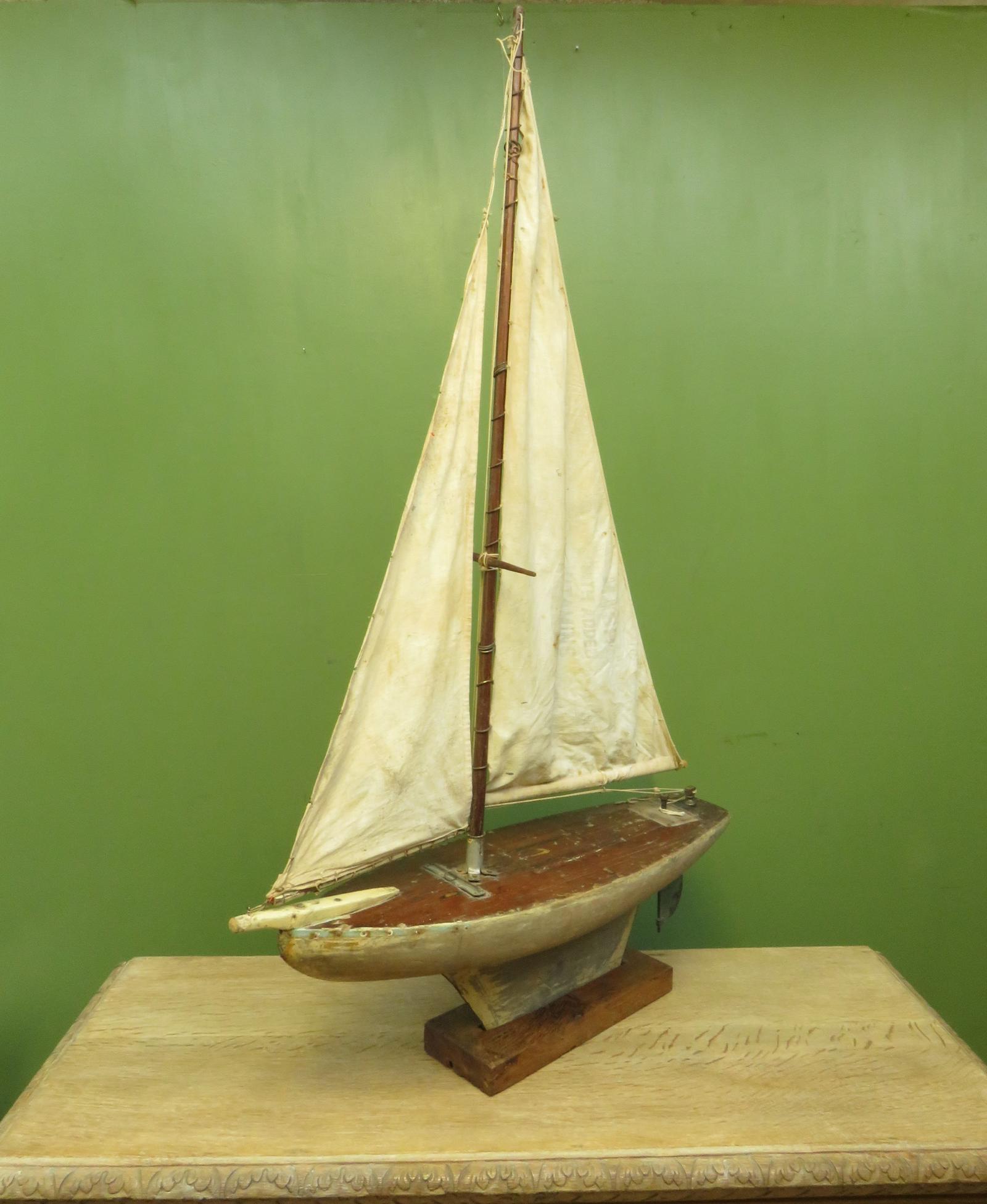 Large Vintage Scratch Built Pond Yacht with Chicken Feed Sack Sail