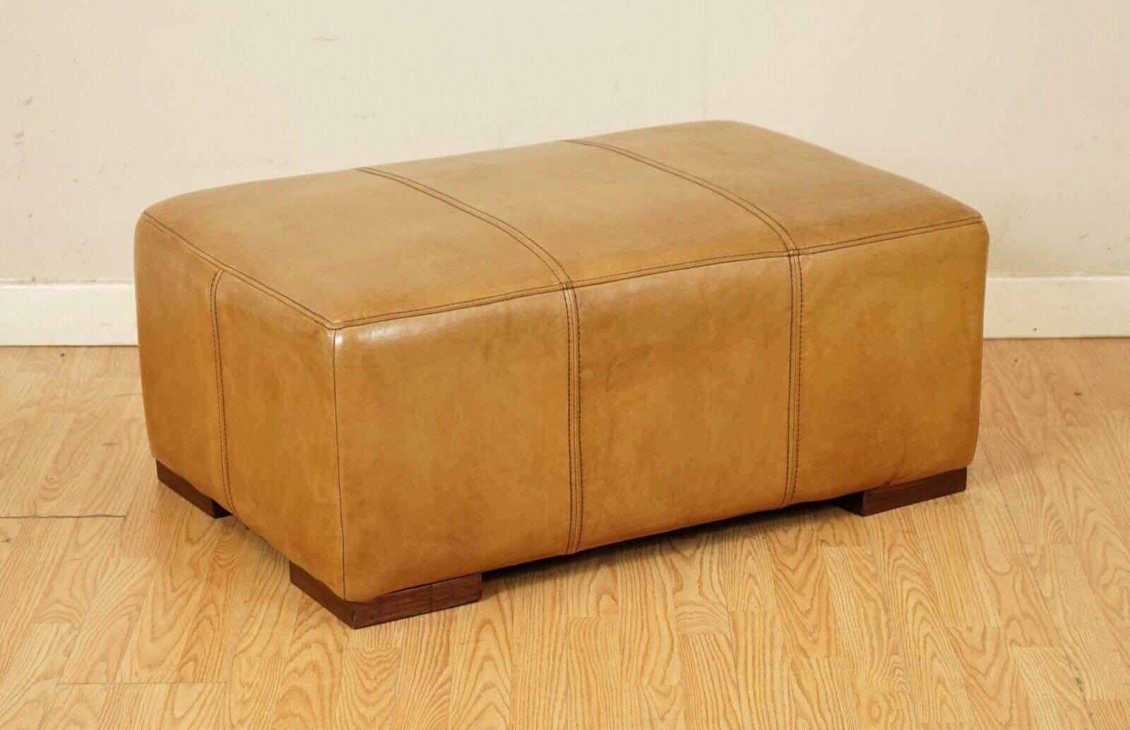 Large Vintage Tan Leather Footstool Ottoman by Halo