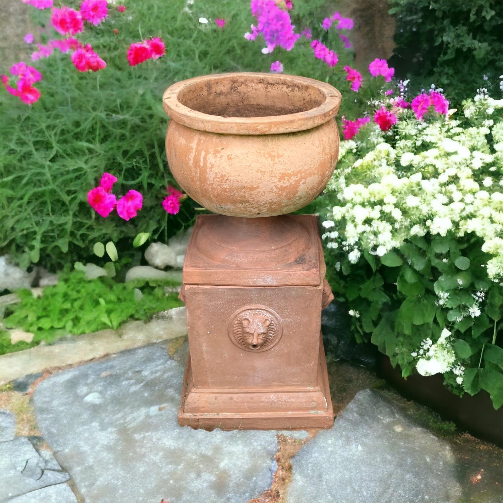 Large Vintage Terracotta Urn on Ornate Square Plynth