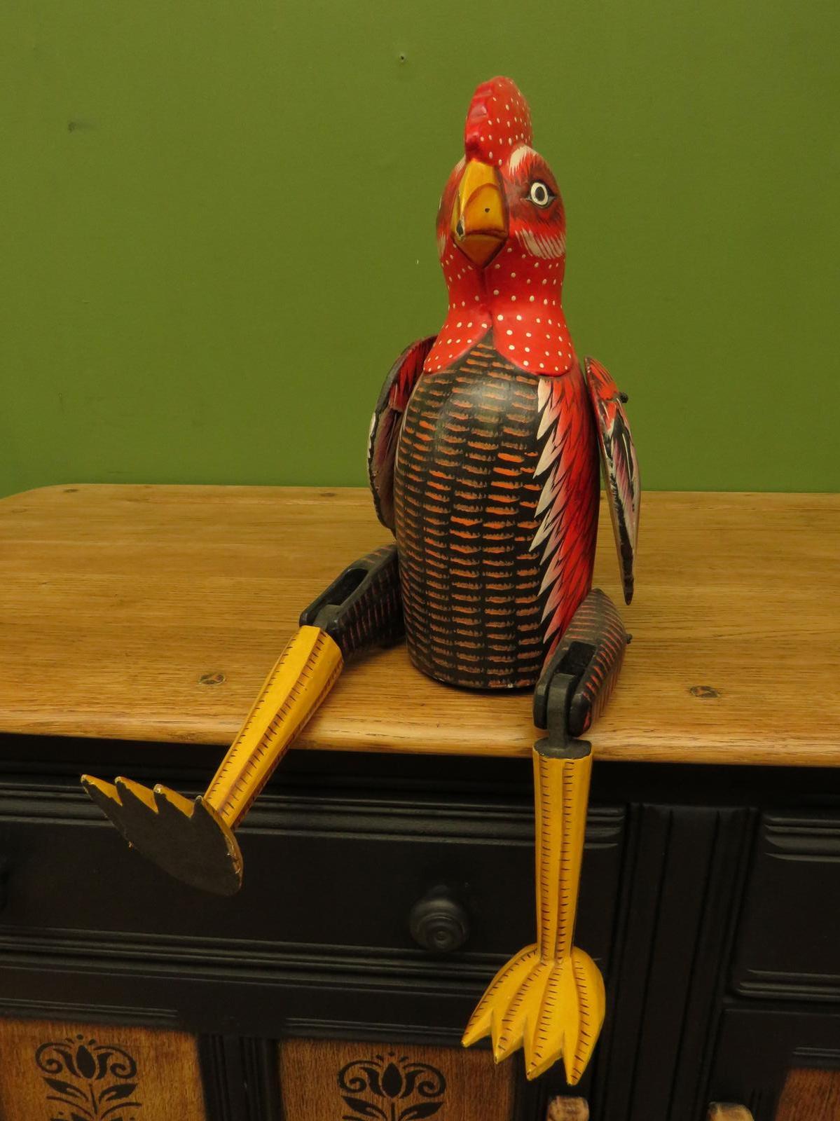 Large Vintage Wood Hand Painted Folk Art Chicken Rooster Decoration Shelf Sitter