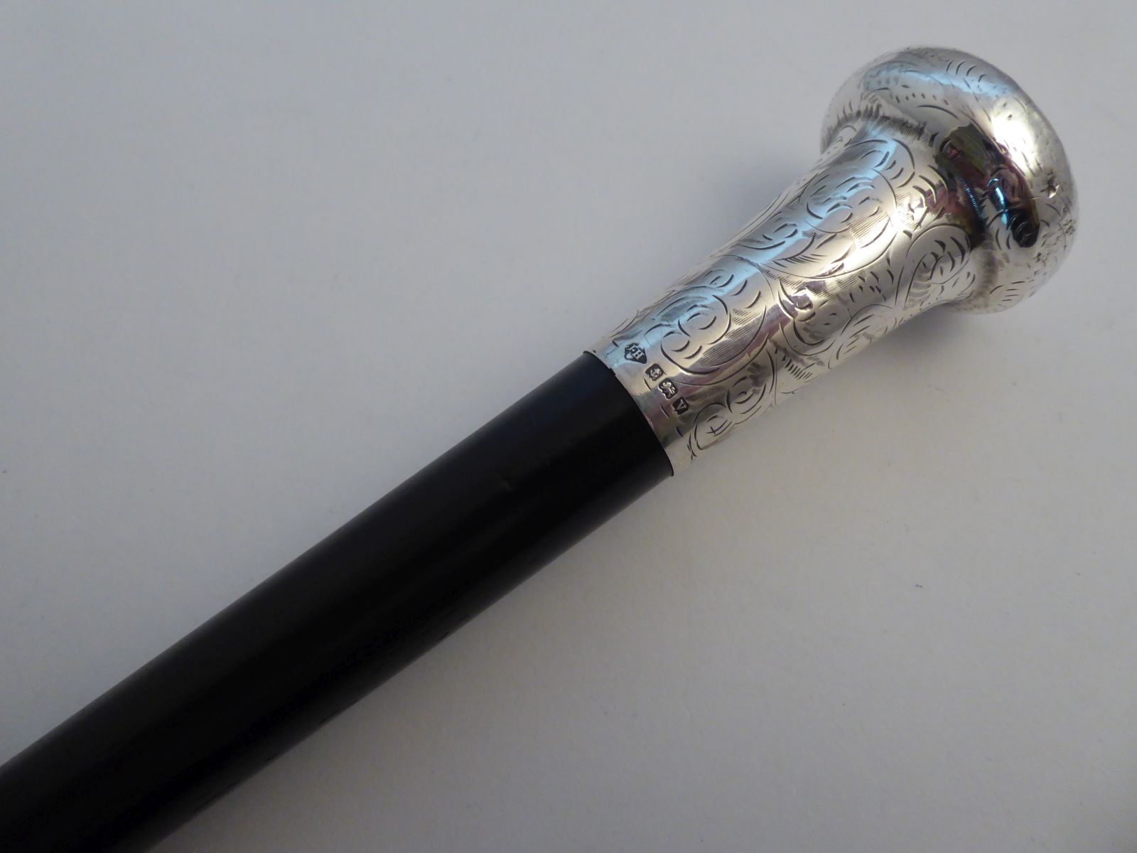 Large Walking Stick Cane 1920 Hallmarked Solid Silver Pommel Ebony Wood Shaft